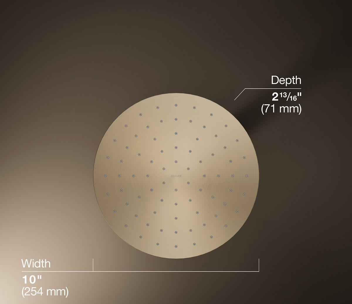 Enjoy a shower that simulates the soaking deluge of a warm summer downpour. This contemporary-style rainhead features innovative Katalyst air-induction technology, which efficiently mixes air and water to produce large water droplets and deliver a powerful, thoroughly drenching overhead shower experience. Its clean good looks and durable finish coordinate with many other KOHLER faucets and accessories.