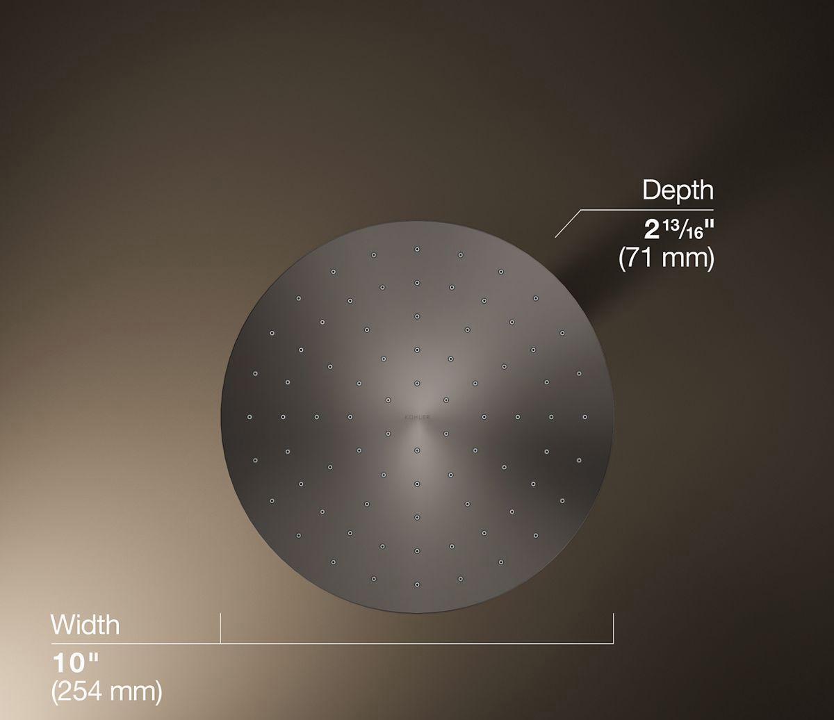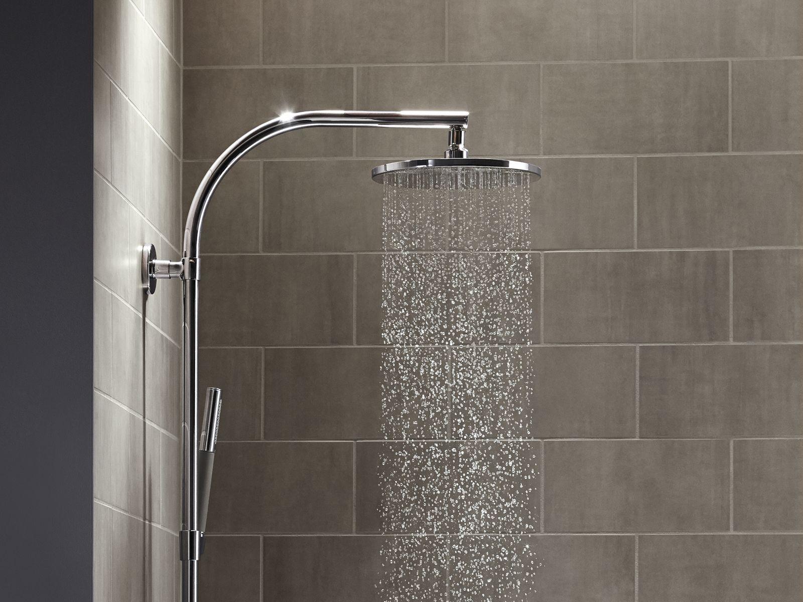 Enjoy a shower that simulates the soaking deluge of a warm summer downpour. This contemporary-style rainhead features innovative Katalyst air-induction technology, which efficiently mixes air and water to produce large water droplets and deliver a powerful, thoroughly drenching overhead shower experience. Its clean good looks and durable finish coordinate with many other KOHLER faucets and accessories.