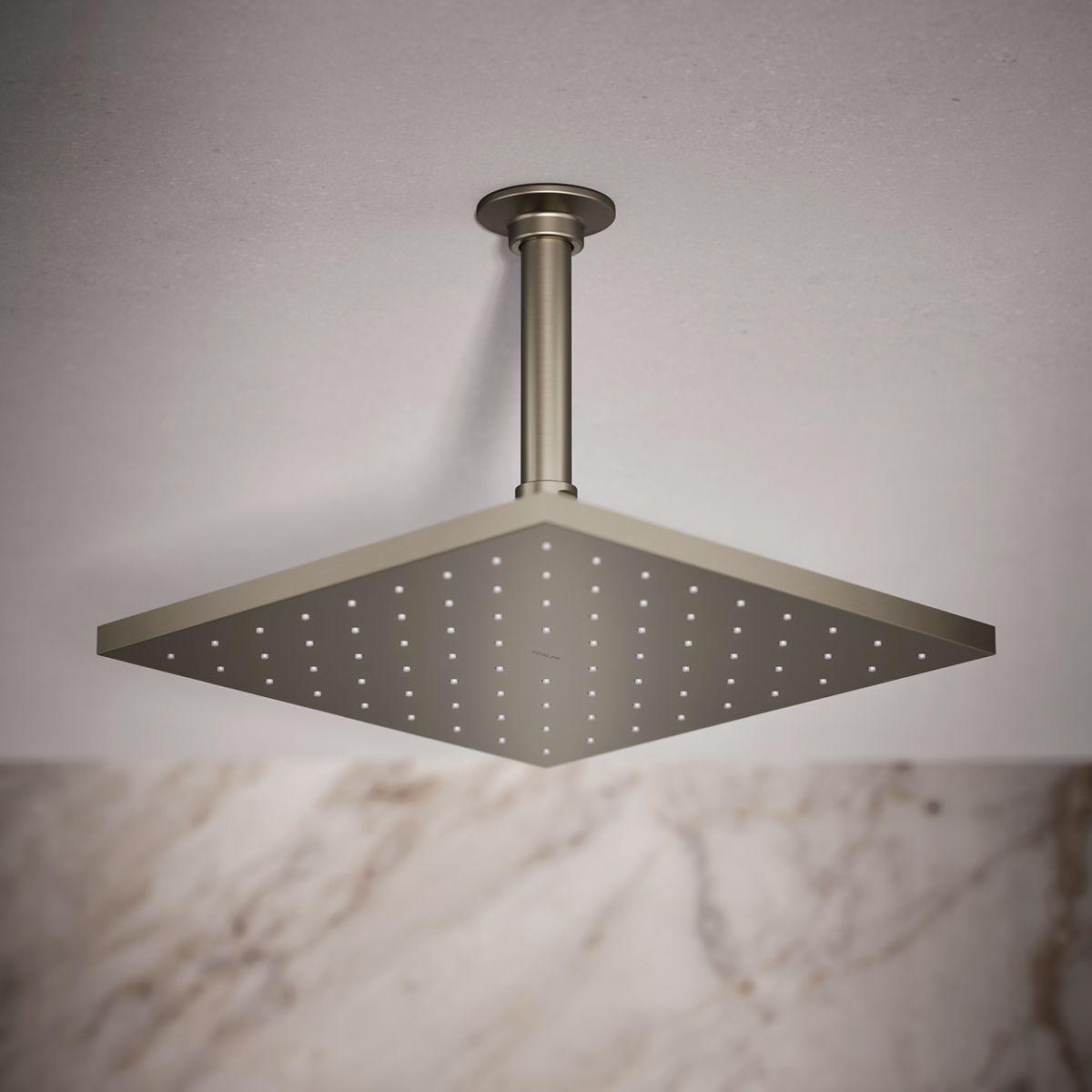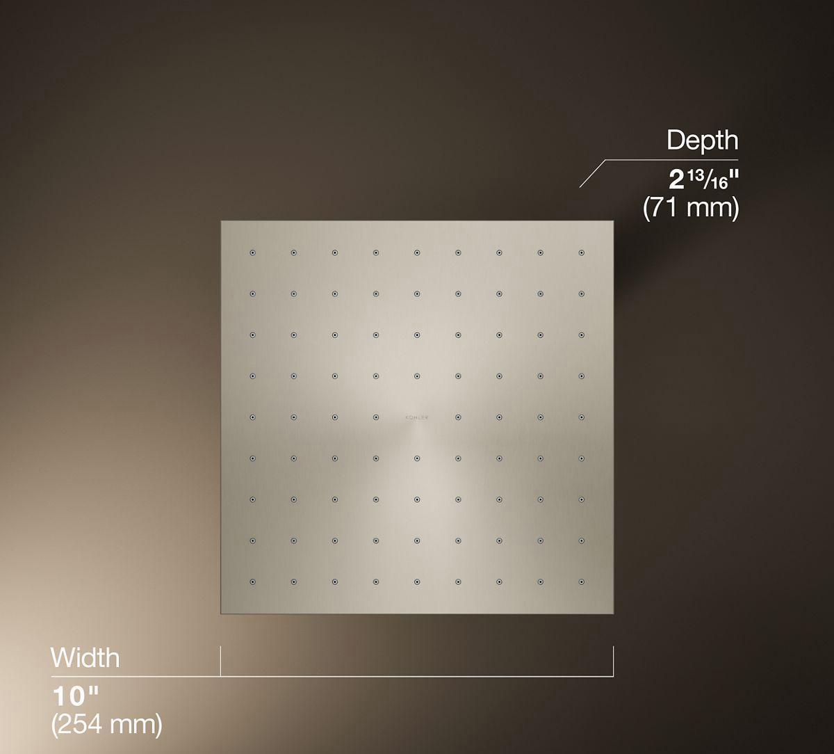 Enjoy a shower that simulates the soaking deluge of a warm summer downpour. This contemporary-style rainhead features innovative Katalyst air-induction technology, which efficiently mixes air and water to produce large water droplets and deliver a powerful, thoroughly drenching overhead shower experience. Its clean good looks and durable finish coordinate with many other KOHLER faucets and accessories.