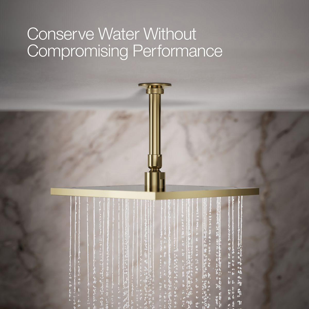Enjoy a shower that simulates the soaking deluge of a warm summer downpour. This contemporary-style rainhead features innovative Katalyst air-induction technology, which efficiently mixes air and water to produce large water droplets and deliver a powerful, thoroughly drenching overhead shower experience. Its clean good looks and durable finish coordinate with many other KOHLER faucets and accessories.