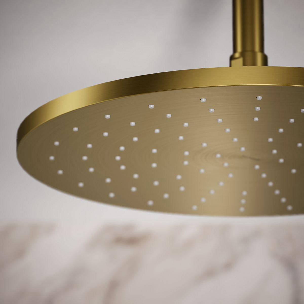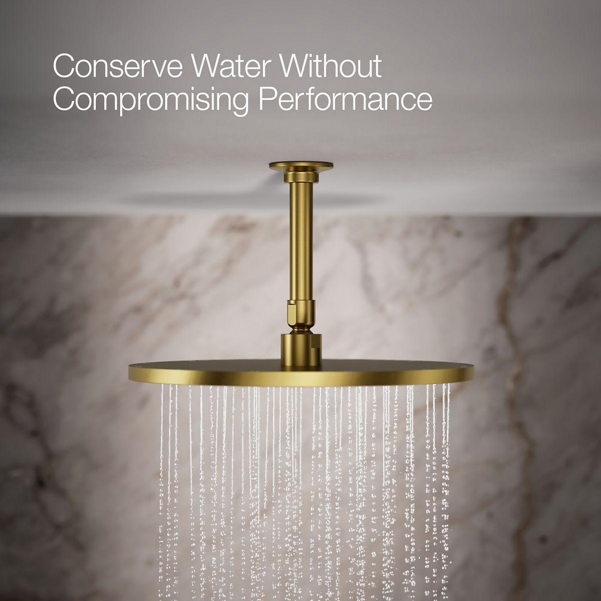 Enjoy a shower that simulates the soaking deluge of a warm summer downpour. This contemporary-style rainhead features innovative Katalyst air-induction technology, which efficiently mixes air and water to produce large water droplets and deliver a powerful, thoroughly drenching overhead shower experience. Its clean good looks and durable finish coordinate with many other KOHLER faucets and accessories.