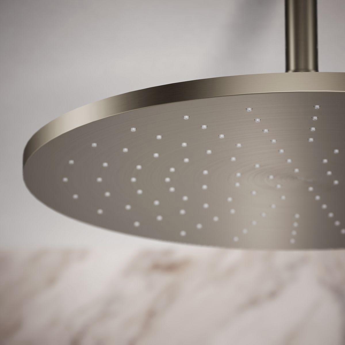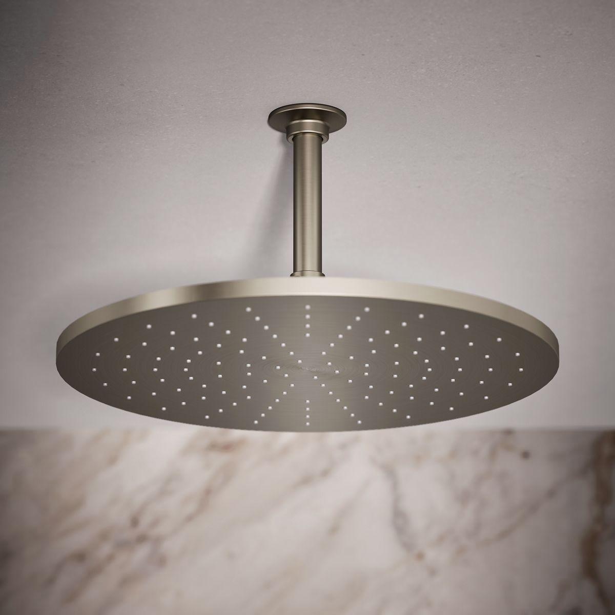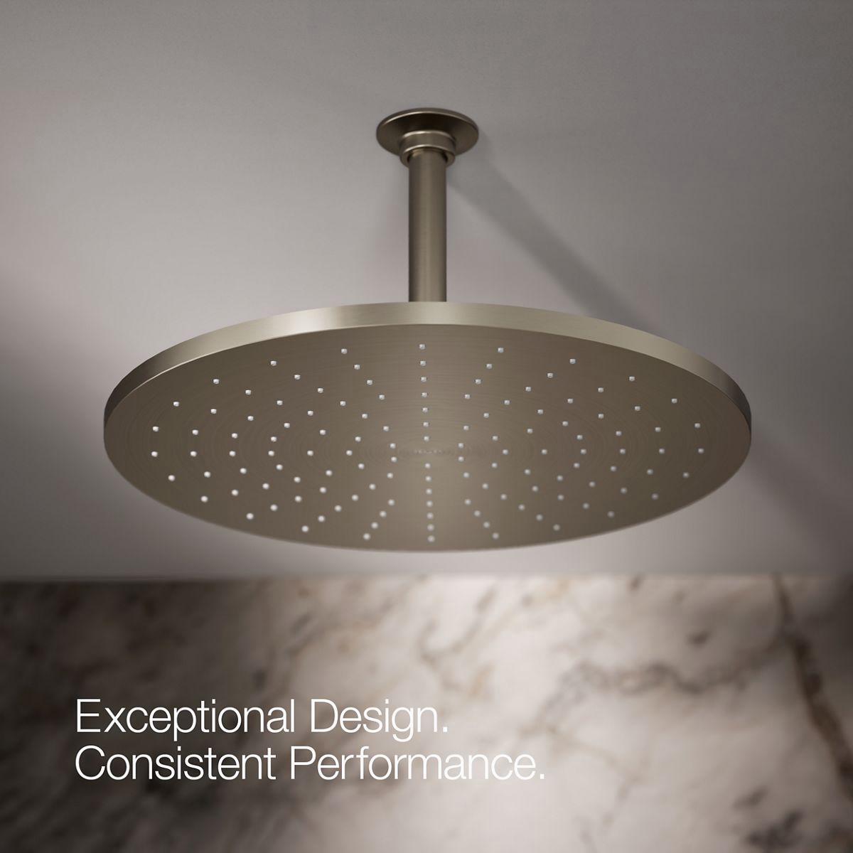 Enjoy a shower that simulates the soaking deluge of a warm summer downpour. This contemporary-style rainhead features innovative Katalyst air-induction technology, which efficiently mixes air and water to produce large water droplets and deliver a powerful, thoroughly drenching overhead shower experience. Its clean good looks and durable finish coordinate with many other KOHLER faucets and accessories.