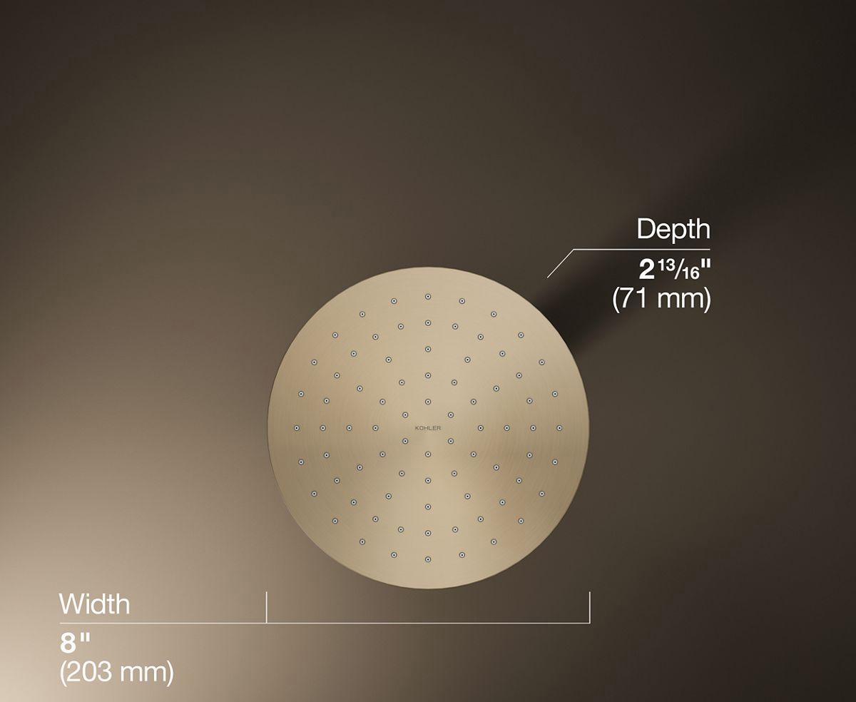 Enjoy a shower that simulates the soaking deluge of a warm summer downpour. This contemporary-style rainhead features innovative Katalyst air-induction technology, which efficiently mixes air and water to produce large water droplets and deliver a powerful, thoroughly drenching overhead shower experience. Its clean good looks and durable finish coordinate with many other KOHLER faucets and accessories.