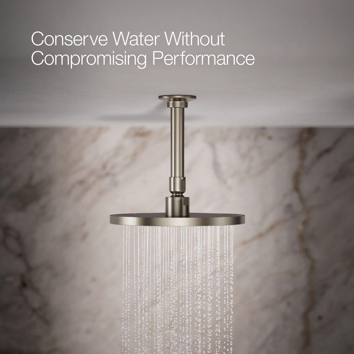 Enjoy a shower that simulates the soaking deluge of a warm summer downpour. This contemporary-style rainhead features innovative Katalyst air-induction technology, which efficiently mixes air and water to produce large water droplets and deliver a powerful, thoroughly drenching overhead shower experience. Its clean good looks and durable finish coordinate with many other KOHLER faucets and accessories.