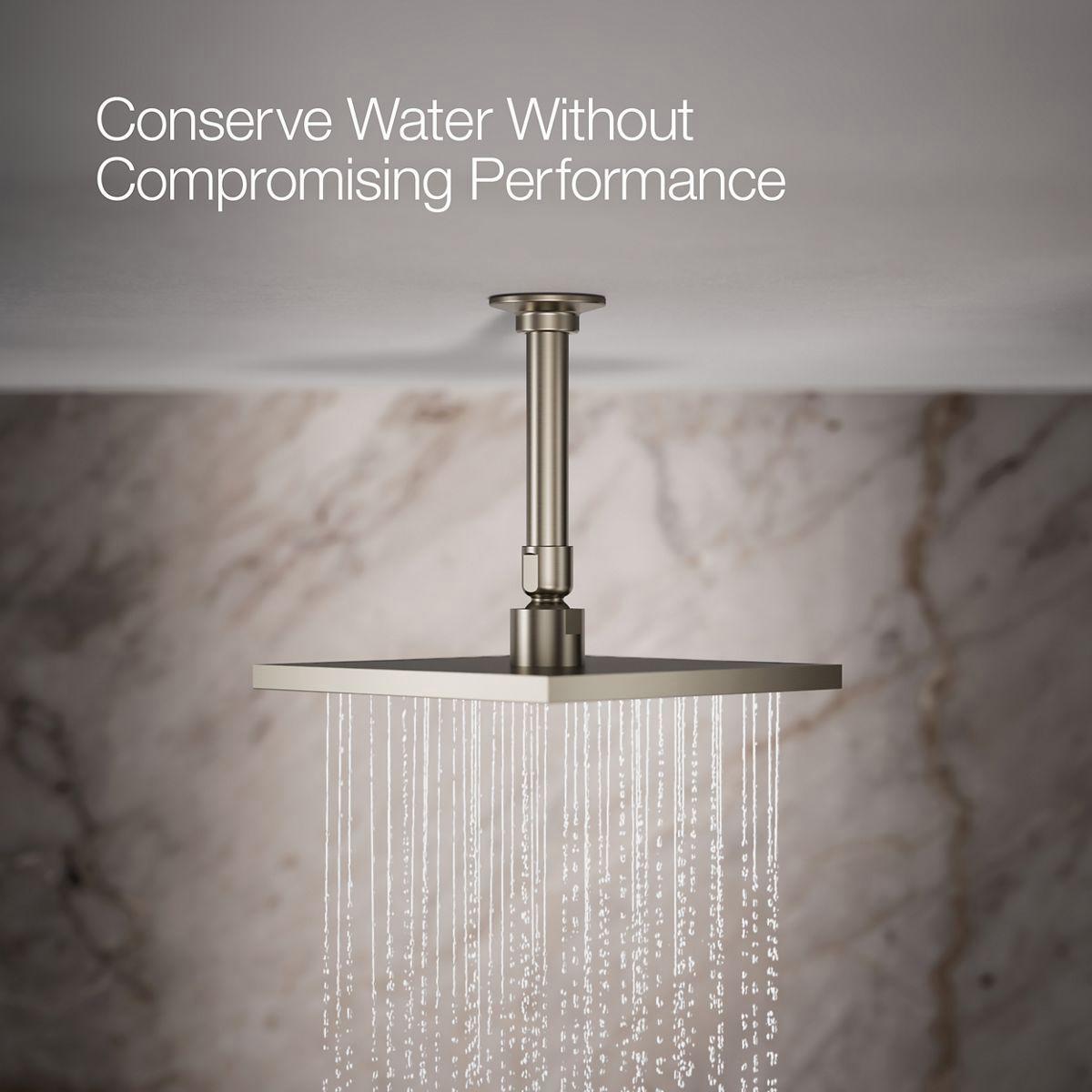 Enjoy a shower that simulates the soaking deluge of a warm summer downpour. This contemporary-style rainhead features innovative Katalyst air-induction technology, which efficiently mixes air and water to produce large water droplets and deliver a powerful, thoroughly drenching overhead shower experience. Its clean good looks and durable finish coordinate with many other KOHLER faucets and accessories.
