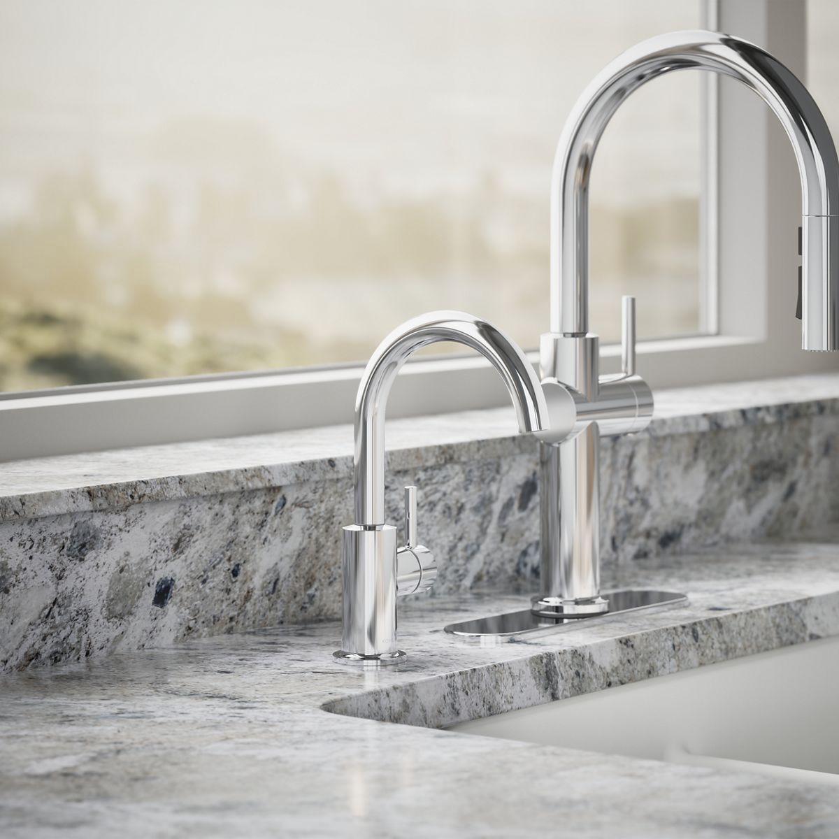 This beverage faucet adds convenience and its contemporary style coordinates easily with many kitchen decors. A swing spout makes filling large pitchers a breeze, while a ceramic valve gives you precise control over water flow to prevent splashing. Pair this contemporary faucet with a bar/prep sink and an undercounter water filter or chiller for easy access to pure, refreshing drinking water.