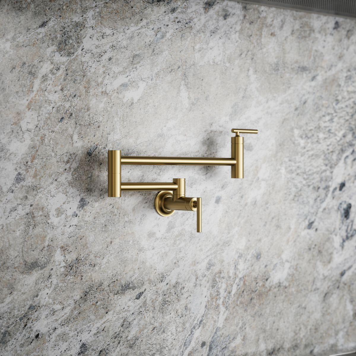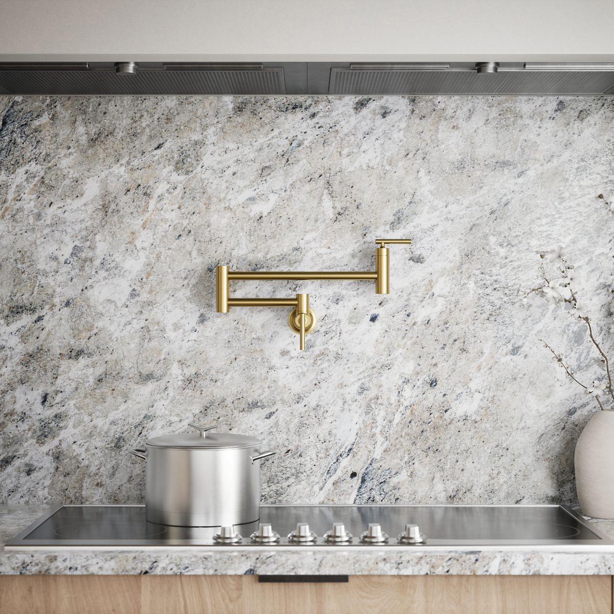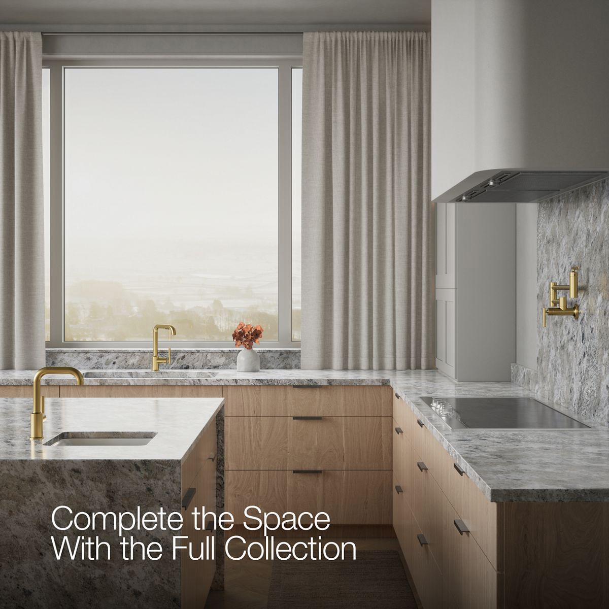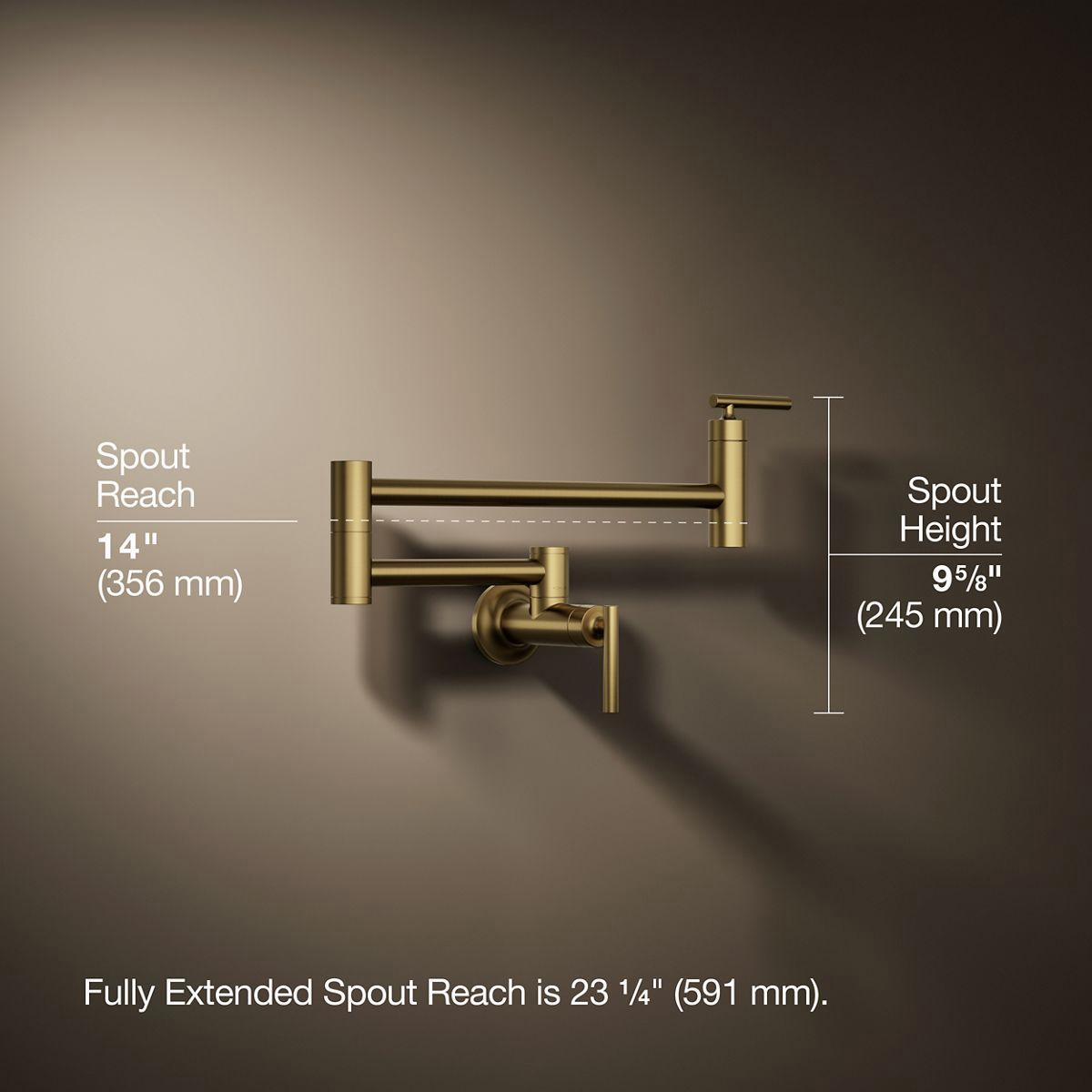 Imagine the practicality of a faucet that takes up no valuable counter space and can fold out of the way when not in use. Now imagine a faucet that can swing both to the left or right, extends to over 23” so that you can fill pots on or near your stove, and fills faster thanks to its robust 5.2 gpm flow rate. The wall-mount pot filler from KOHLER, with its clean, contemporary design, doesn’t overpower or detract from your kitchen design, but it will still create a stir.