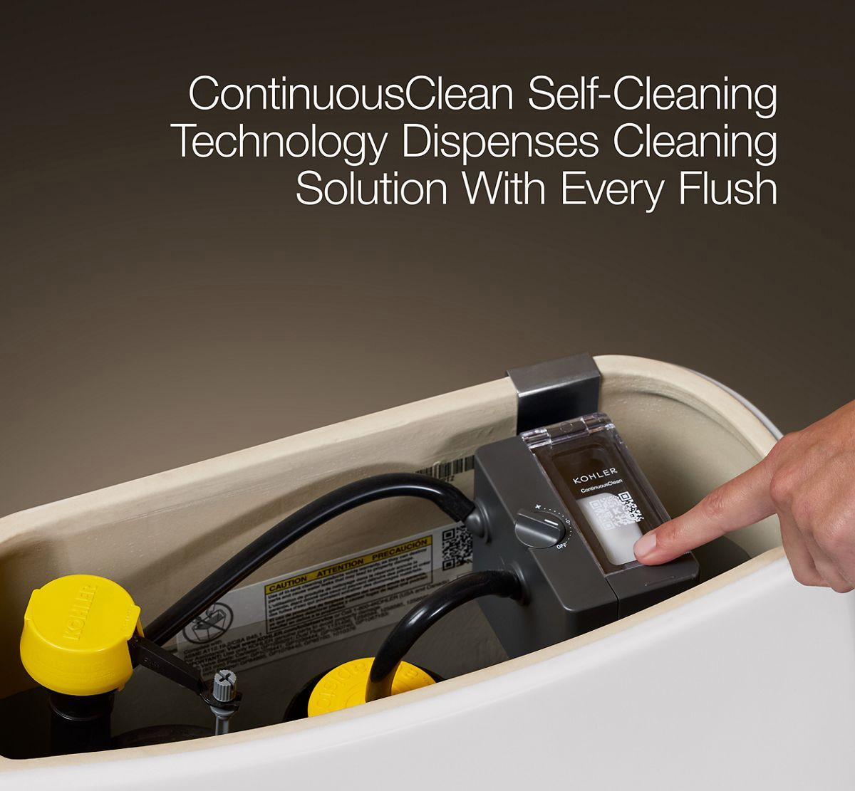 - ContinuousClean system automatically dispenses cleaning solution with every flush.