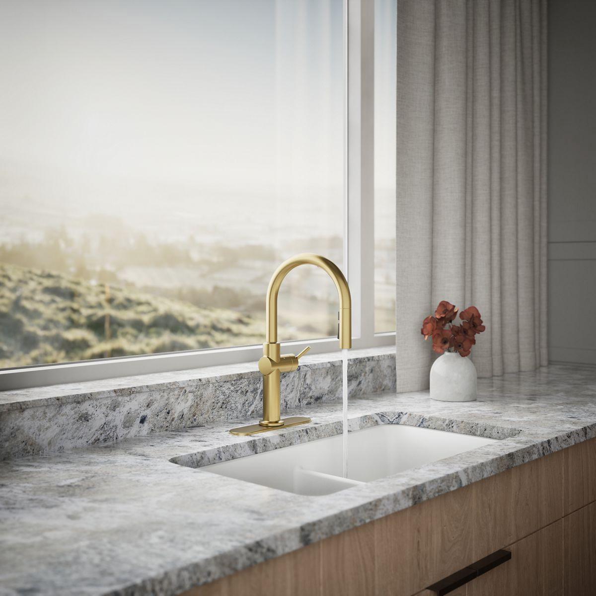 A model of clean, sophisticated design, the Crue kitchen faucet collection represents a true high point in user-focused plumbing design for the kitchen. The silhouette — a simple arched spout and single lever handle — offers a straightforward style that adapts to nearly any kitchen design. It’s this contemporary look, paired with thoughtful functionality, that makes the Crue collection a modern marvel.