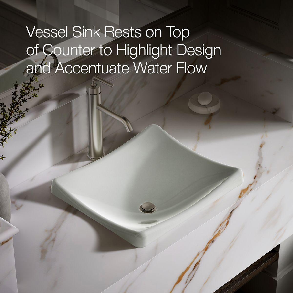 Delicately sloping lines and a squared-off silhouette give the DemiLav Wading Pool sink a distinctive, contemporary style that sets it apart from traditional designs. The shallow basin depth creates a sleek focal point in your bathroom.