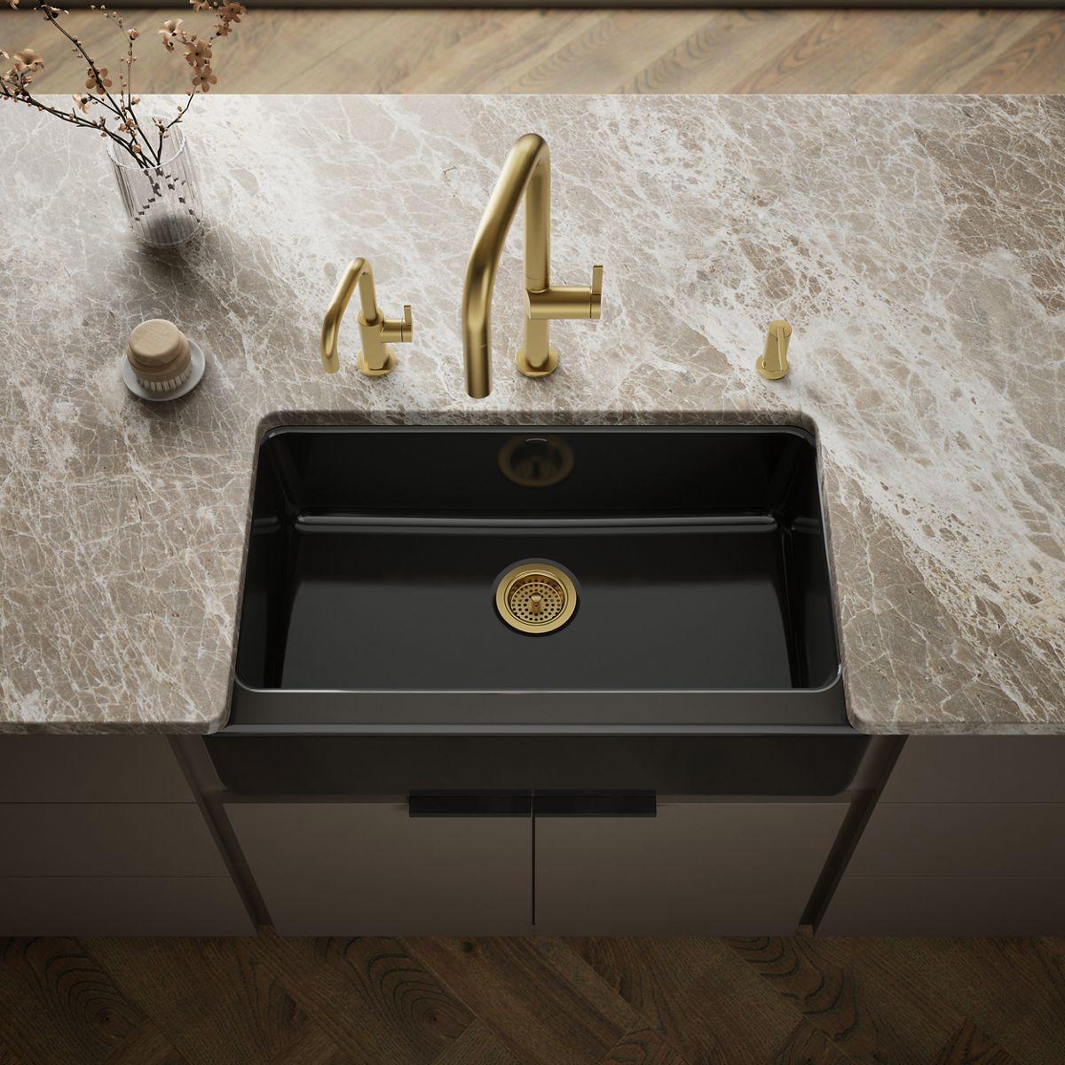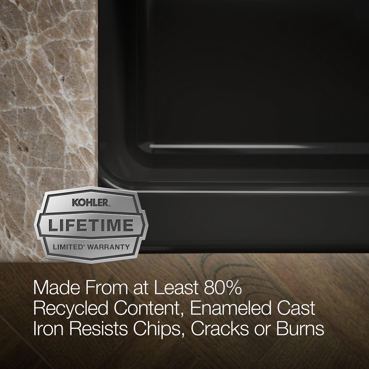 With its strong silhouette and wide basin, the Dickinson farmhouse-style kitchen sink offers a simple, functional alternative to larger double-bowl sinks. A large, single bowl accommodates larger pots and pans. Crafted from enameled cast iron, this sink resists chipping, cracking, or burning for years of beauty and reliable performance. Create a kitchen space that works for you with KOHLER .