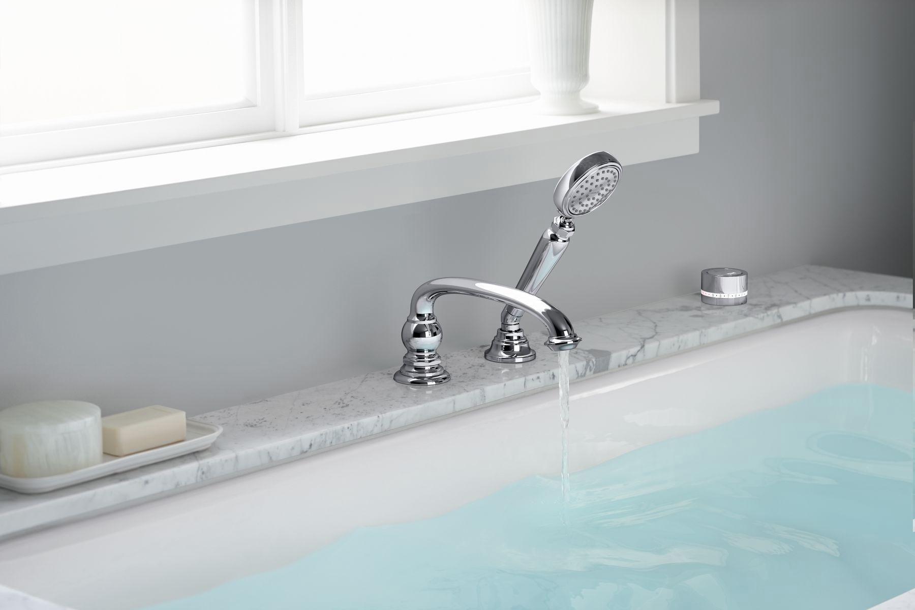 - Simple, intuitive push-button control toggles between bath filler and shower outlet.