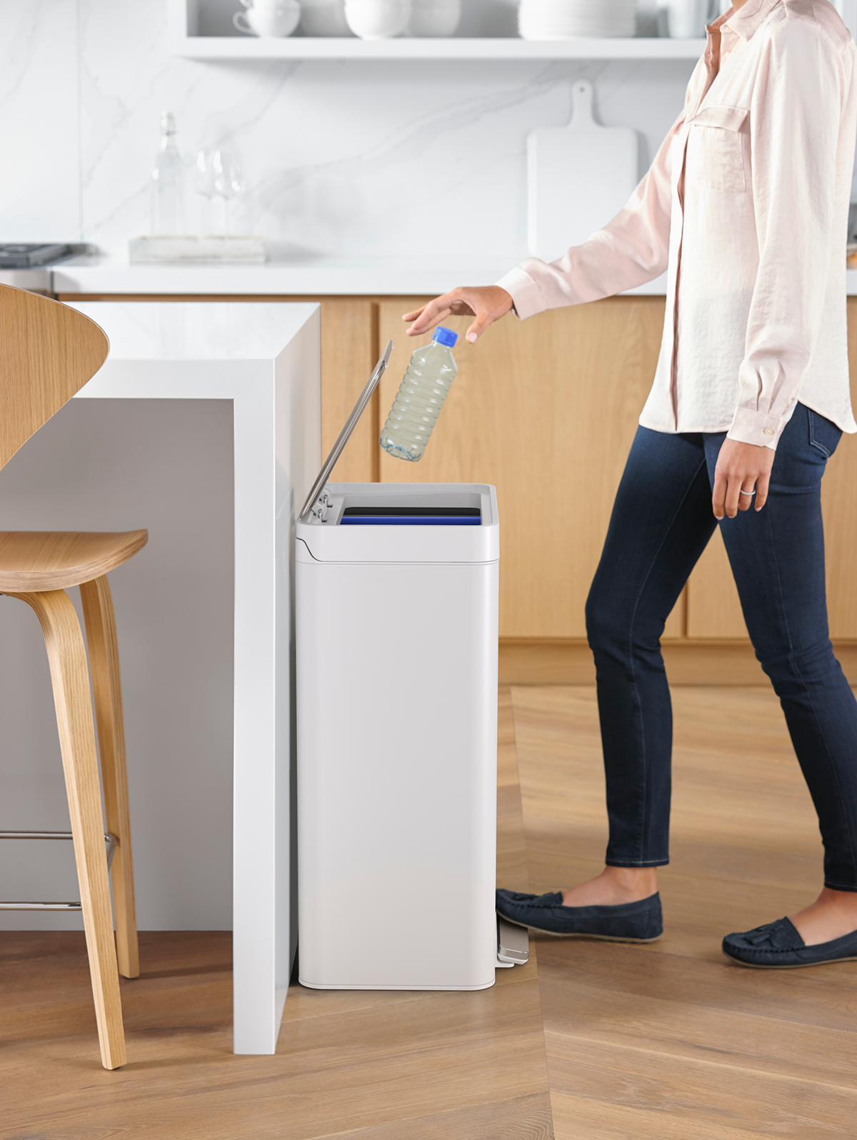 - Dual 5.5-gal. compartments for separating trash and recyclables.