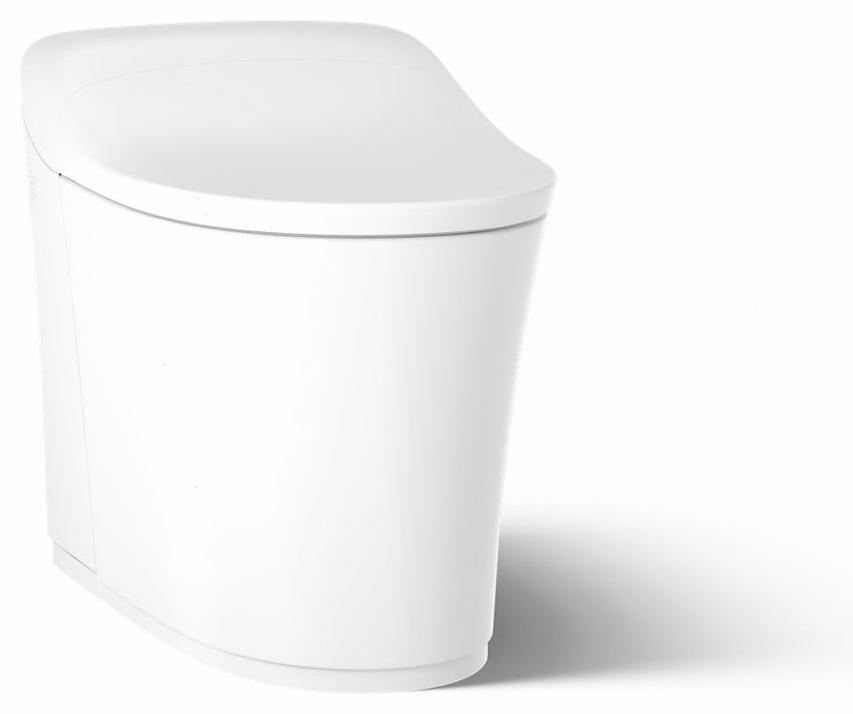 - Compact, streamlined one-piece smart toilet with integrated personal cleansing