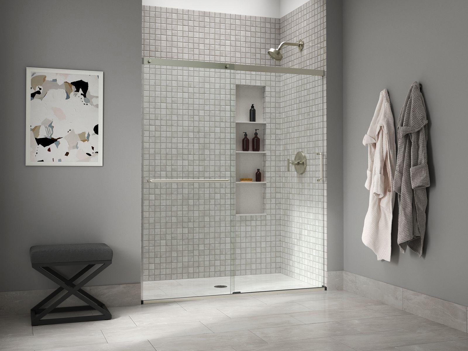 With a sleek, minimalist design, oversized rollers for best-in-class sliding action, and low-maintenance CleanCoat glass treatment, the KOHLER Elate shower door combines bold style with delightful functionality. Because Elate can be installed to open from the left or right, it fits easily into your bathroom layout, and 3/8 out-of-plumb adjustability on each side makes the Elate shower door easy to install. A large range of sizes, glass types, and finishes means there’s an Elate shower door waiting for you.