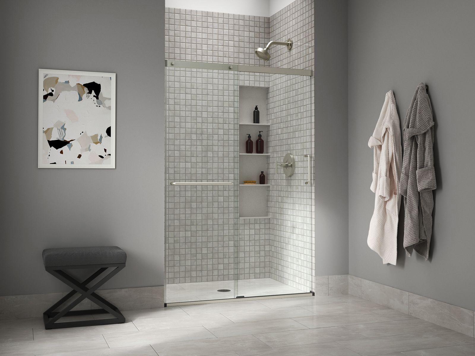 With a sleek, minimalist design, oversized rollers for best-in-class sliding action, and low-maintenance CleanCoat glass treatment, the KOHLER Elate shower door combines bold style with delightful functionality. Because Elate can be installed to open from the left or right, it fits easily into your bathroom layout, and 3/8 out-of-plumb adjustability on each side makes the Elate shower door easy to install. A large range of sizes, glass types, and finishes means there’s an Elate shower door waiting for you.