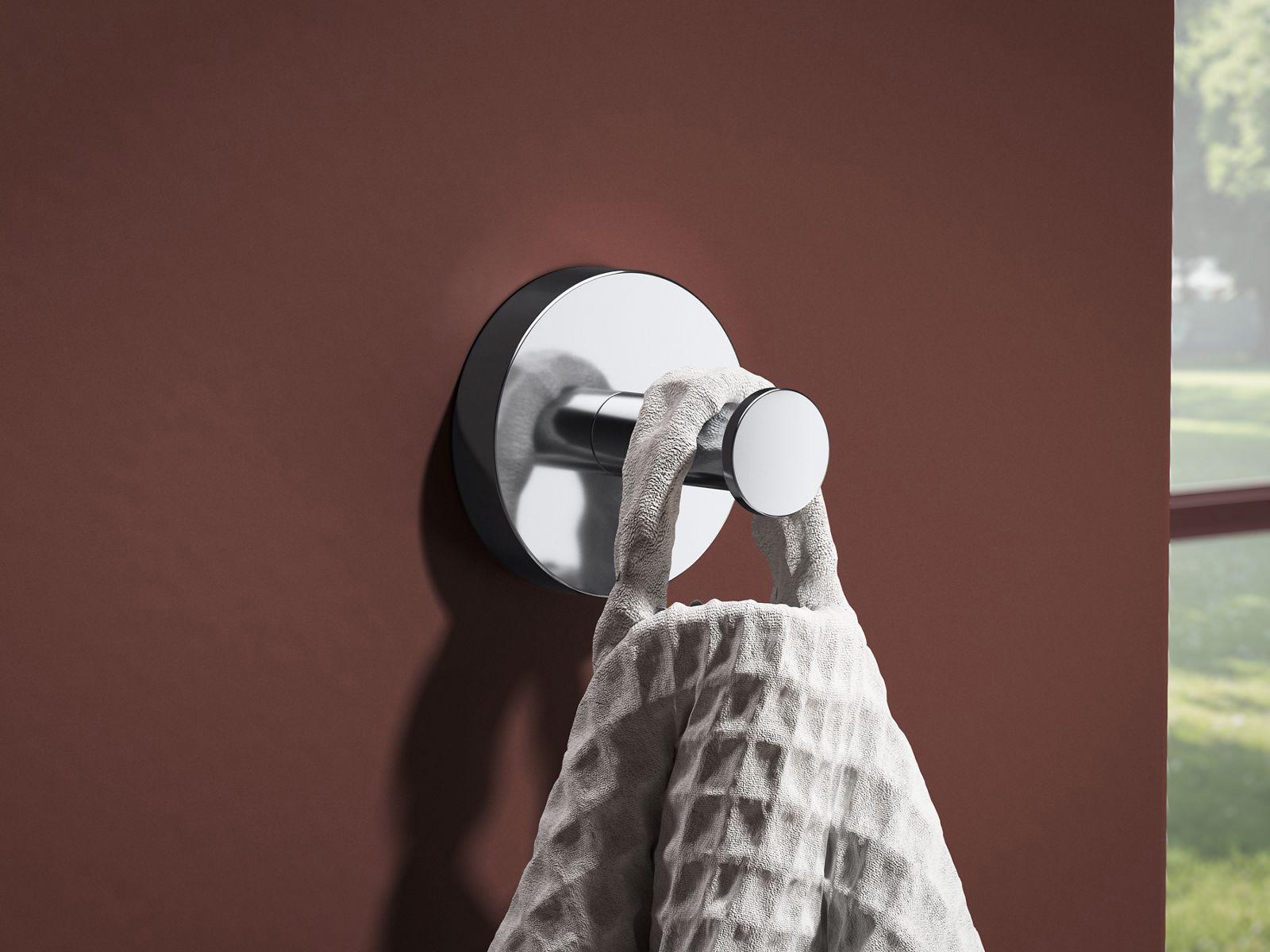 Minimalist in its design, the Elate robe hook works well in traditional as well as highly contemporary bathroom environments.