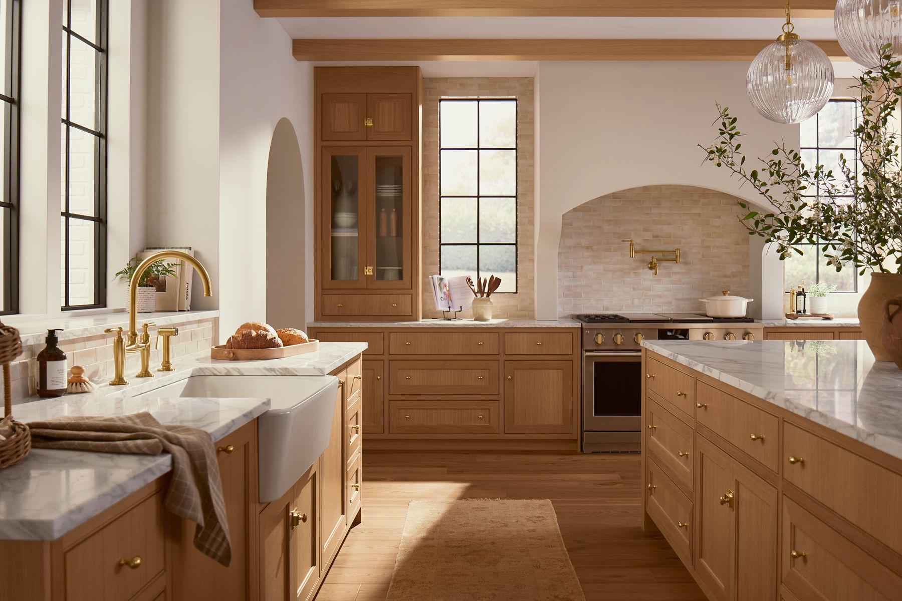 Drawing inspiration from the archives, the Embra lighting collection from Kohler x Studio McGee combines classic and modern influences in a timeless expression for the home. Refined reeding on the glass spheres is effortlessly balanced with exposed screw details, evoking a captivating juxtaposition of glamour and industrial chic. With an array of finish offerings, Embra ensures a tailored and coordinated aesthetic.