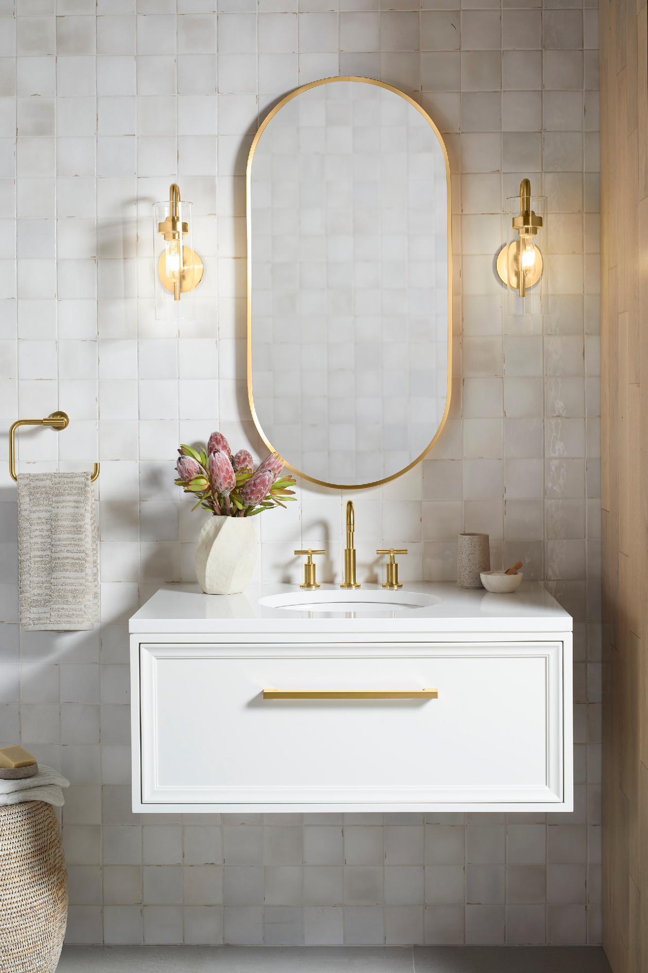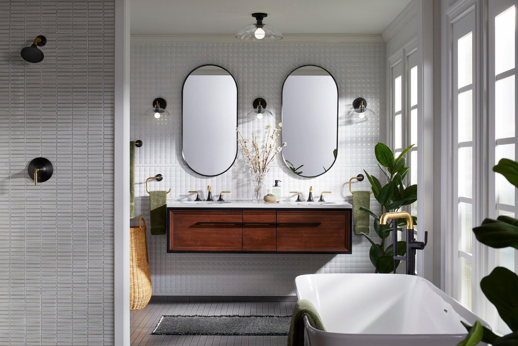 - Finishes coordinate with KOHLER® faucet and lighting products.