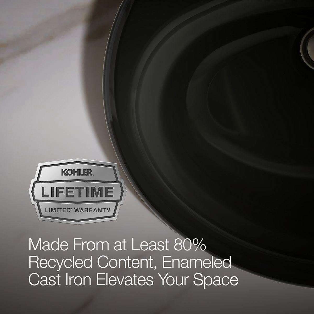A classic beauty, the Farmington features an oval-shaped basin with pleasing lines. The durable cast iron sink features an ultra-thick, high-gloss enamel finish that resists staining, scratching, and chipping to maintain a lustrous sheen over time.