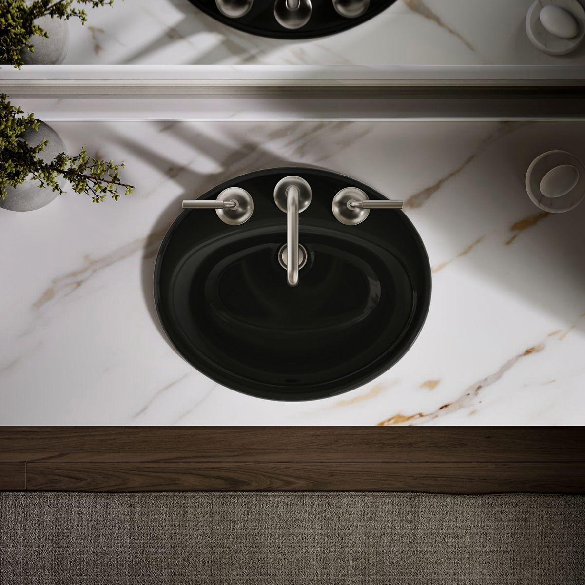A classic beauty, the Farmington features an oval-shaped basin with pleasing lines. The durable cast iron sink features an ultra-thick, high-gloss enamel finish that resists staining, scratching, and chipping to maintain a lustrous sheen over time.
