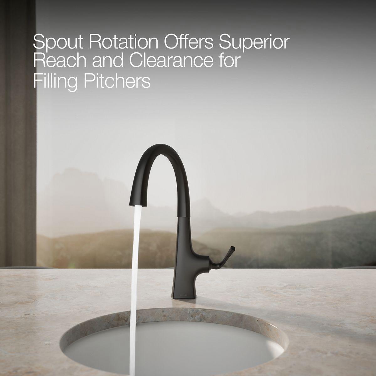 - High-arch swing spout with 155-degree rotation offers superior clearance for filling pitchers, chilling bottles and cleanup.