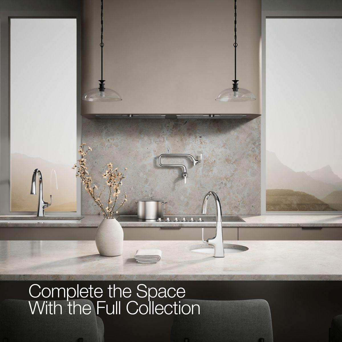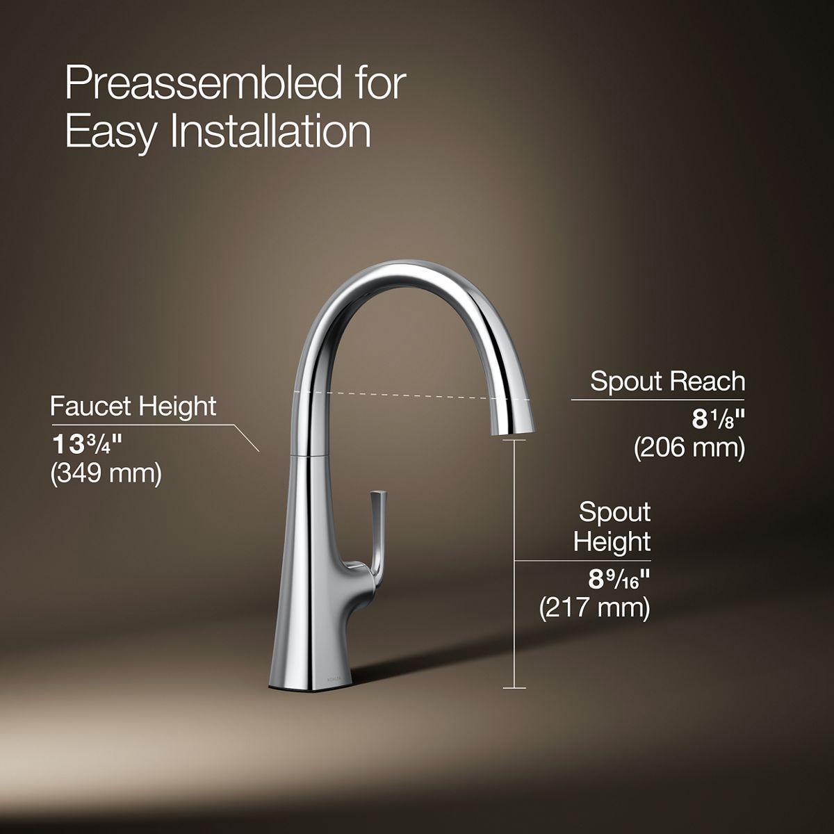 - High-arch swing spout with 155˚ rotation offers superior clearance for filling pitchers, chilling bottles and cleanup