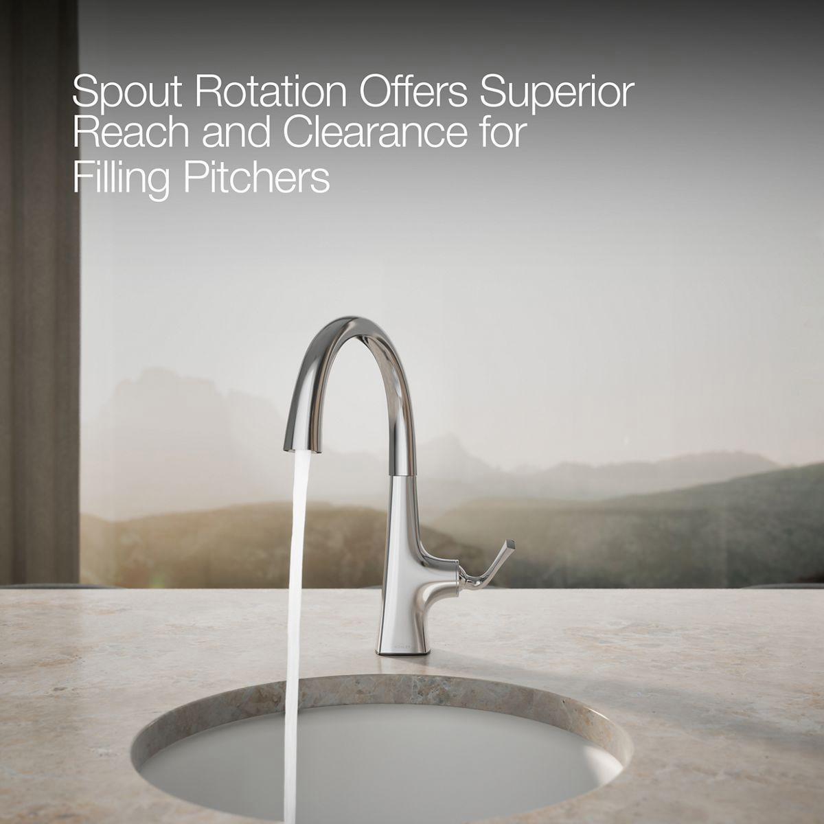 - High-arch swing spout with 155-degree rotation offers superior clearance for filling pitchers, chilling bottles and cleanup.