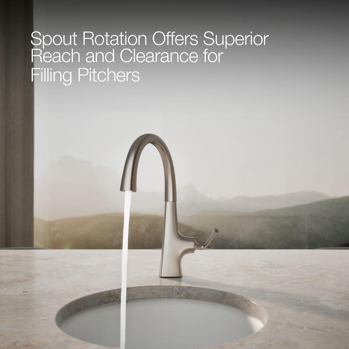 - High-arch swing spout with 155-degree rotation offers superior clearance for filling pitchers, chilling bottles and cleanup.