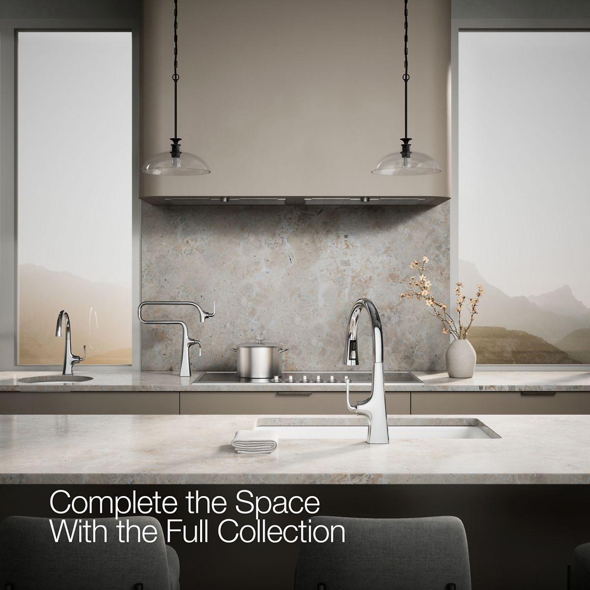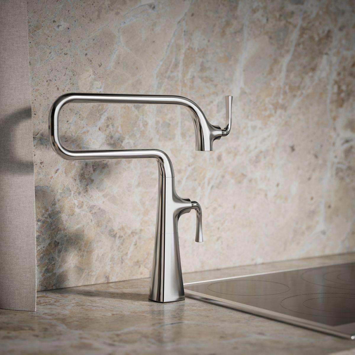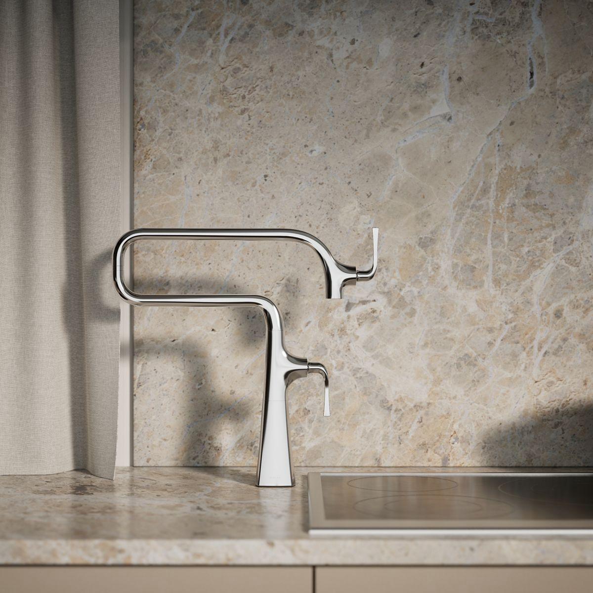- Articulating spout with 360° rotation offers superior clearance for filling pots on cooktops and ranges