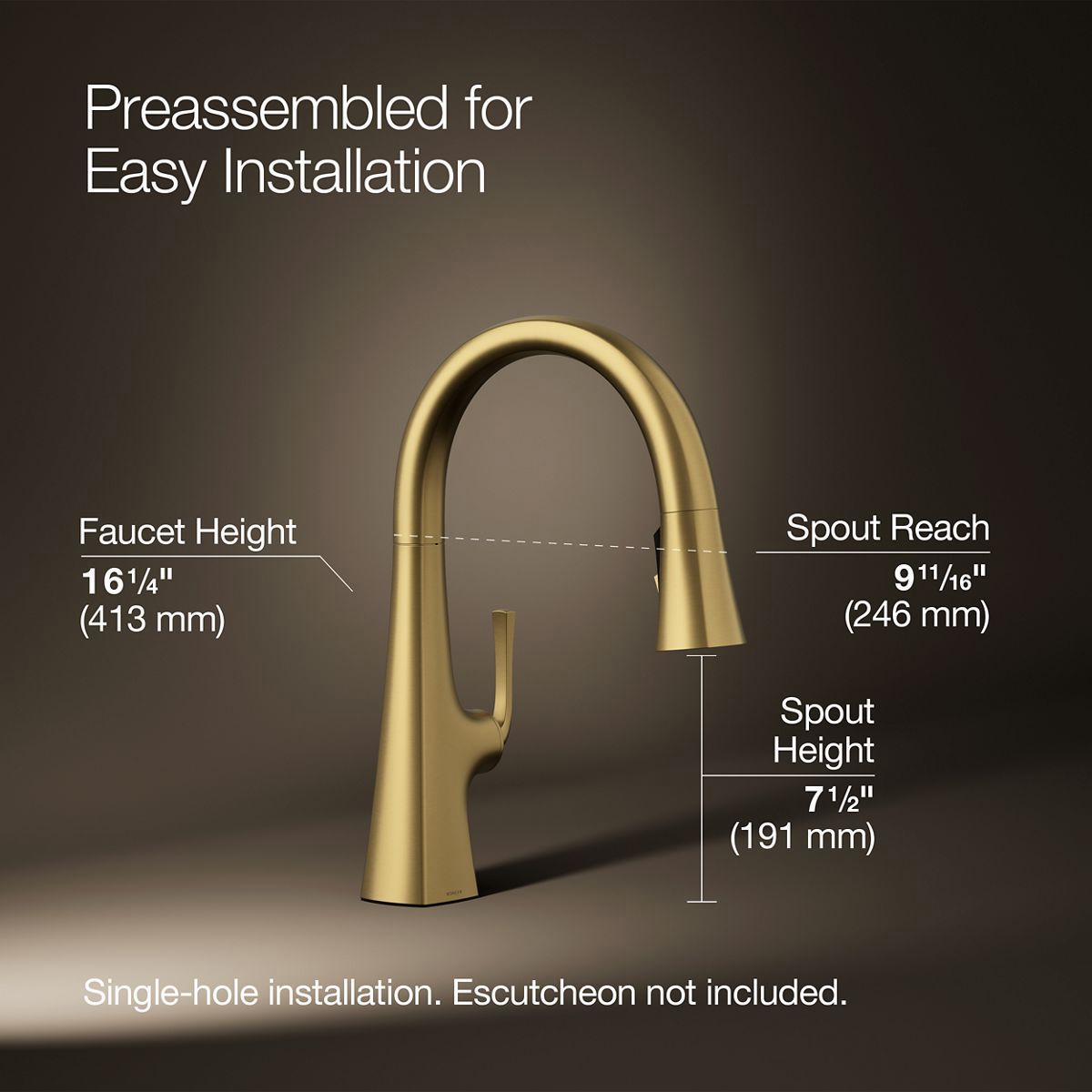 - ProMotion® technology's light, quiet braided hose and swiveling ball joint make the pull-down sprayhead easier and more comfortable to use