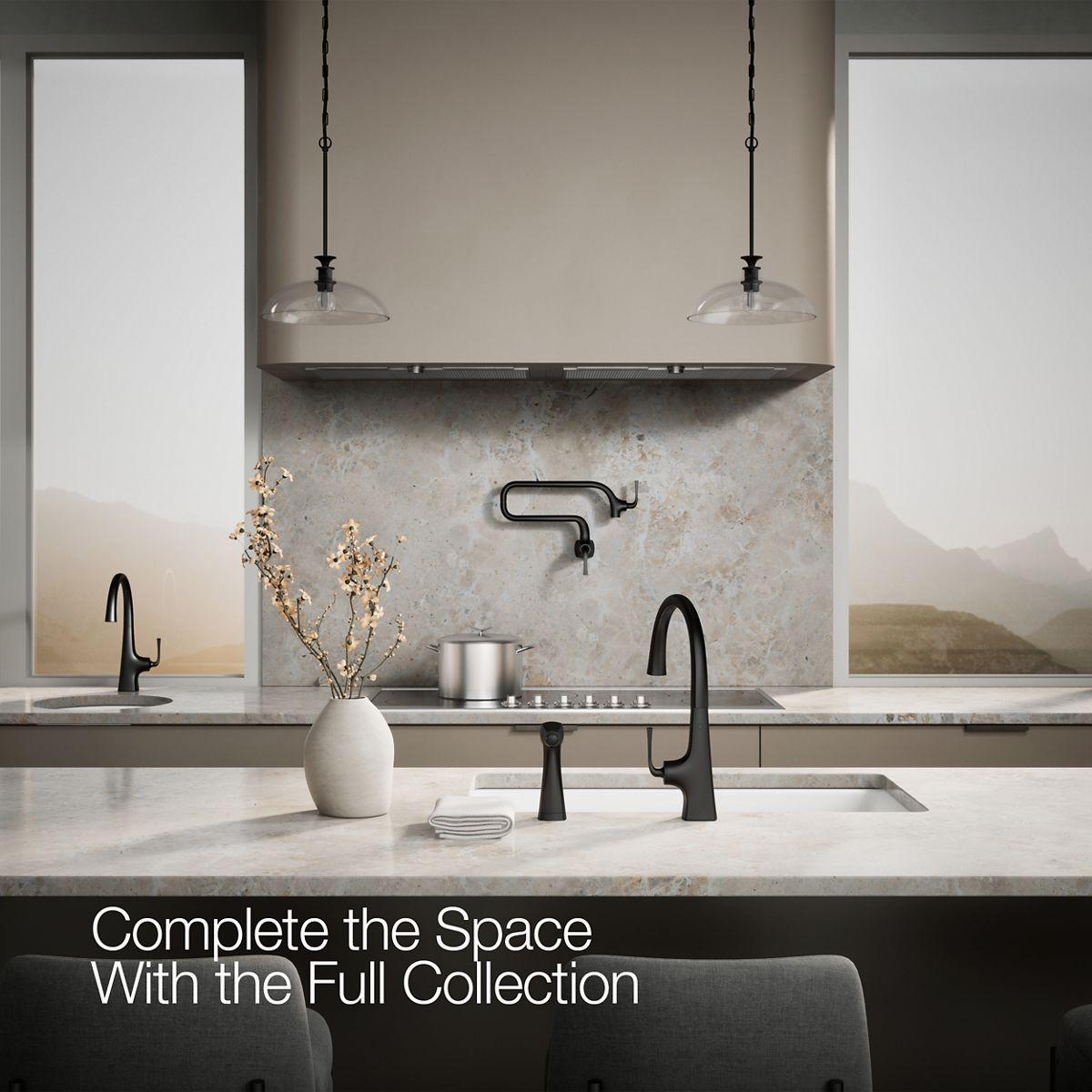- High-arch swing spout with 155˚ rotation offers superior clearance for filling pitchers, chilling bottles and cleanup