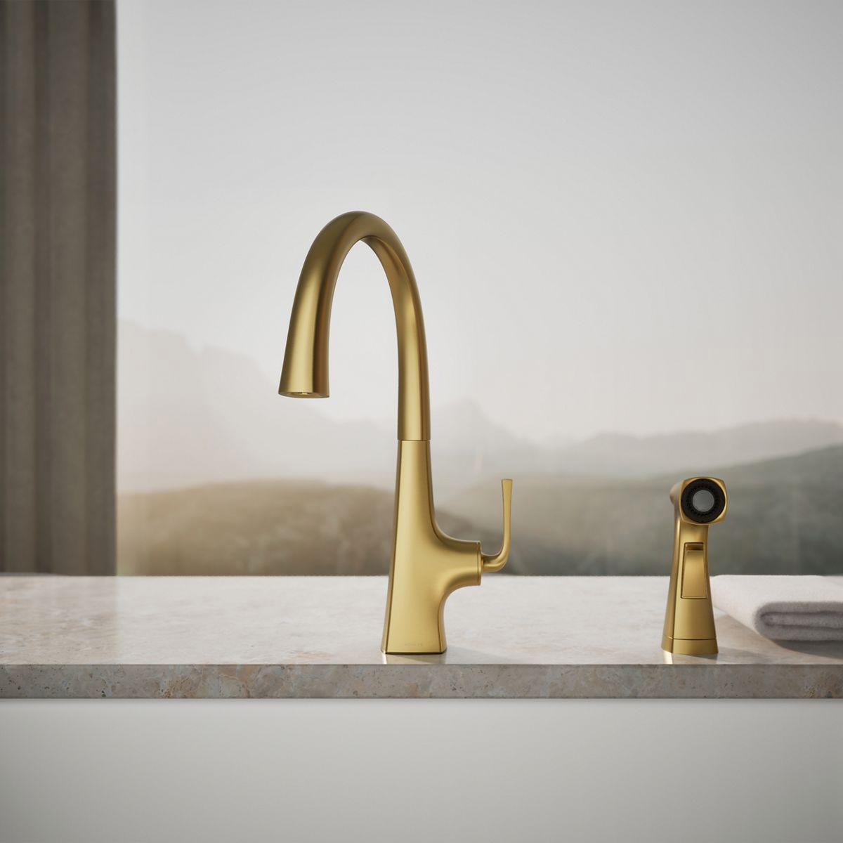 - Sweep spray features specially angled nozzles that form a wide, powerful blade of water to sweep your dishes and sink clean