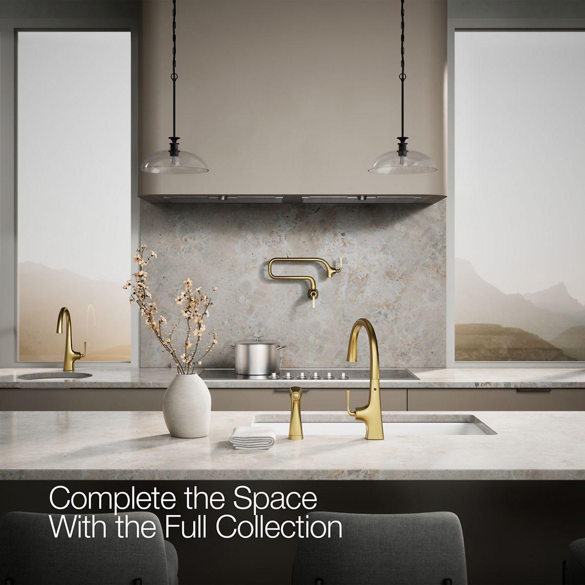 - High-arch swing spout with 155˚ rotation offers superior clearance for filling pitchers, chilling bottles and cleanup