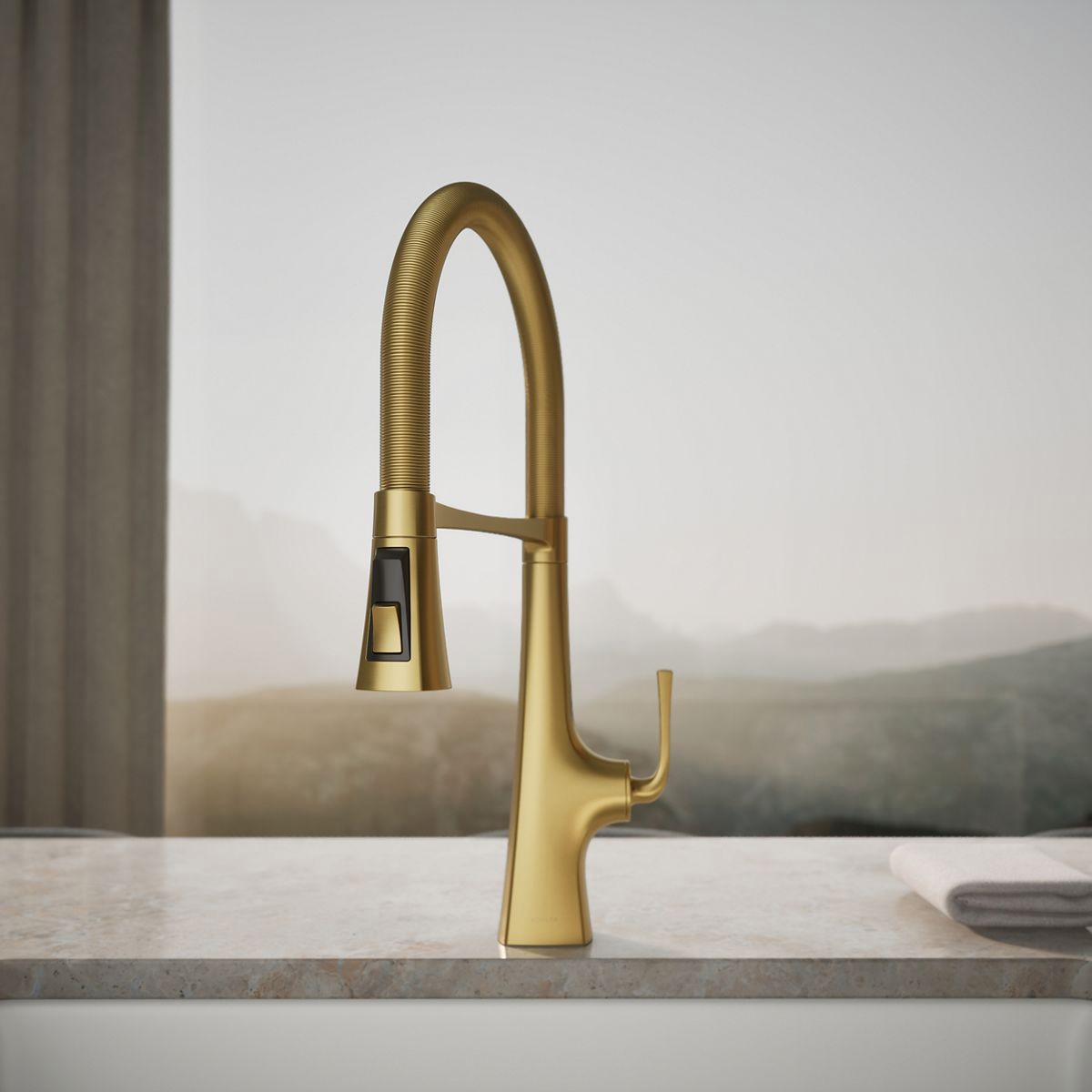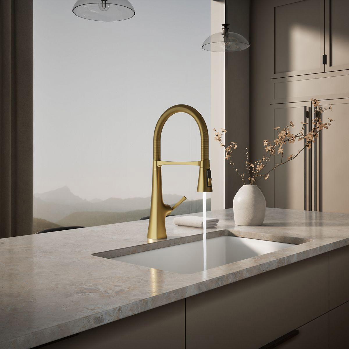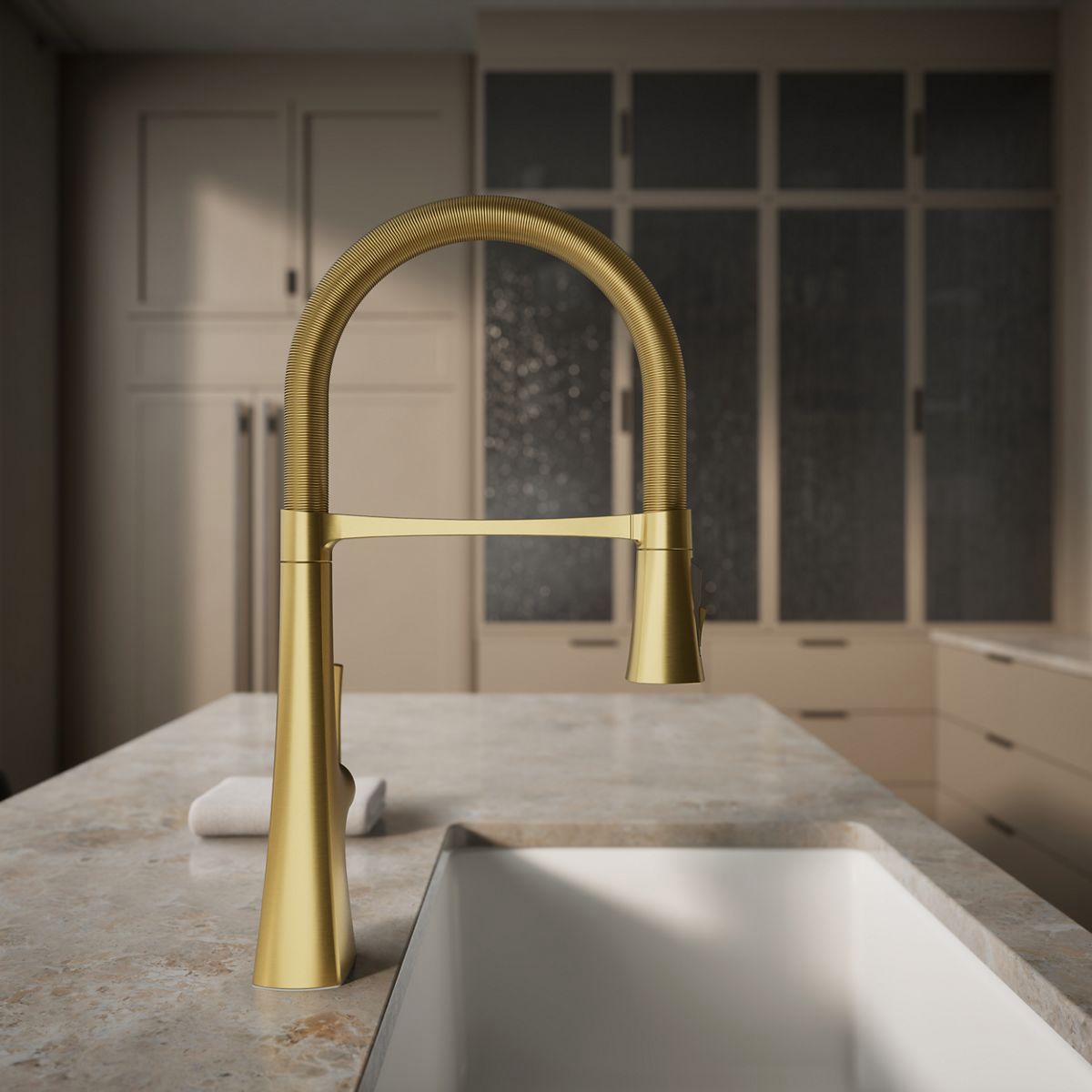 Graze Semi-Professional Kitchen Sink Faucet with 21-9/16" Spout - Vibrant Brushed Moderne Brass 22061-2MB Kohler