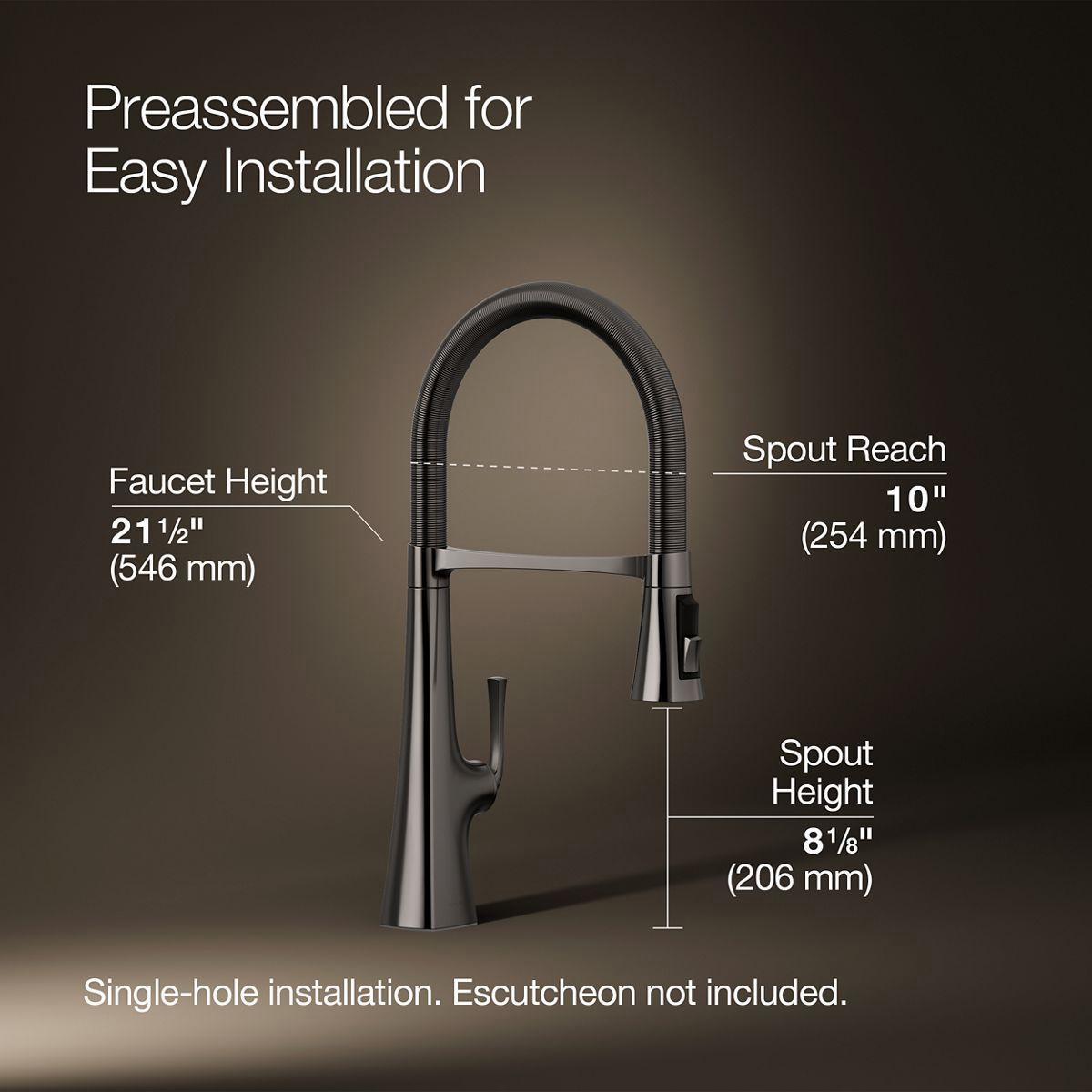 Graze Semi-Professional Kitchen Sink Faucet with 21-9/16" Spout - Vibrant Titanium 22061-TT Kohler
