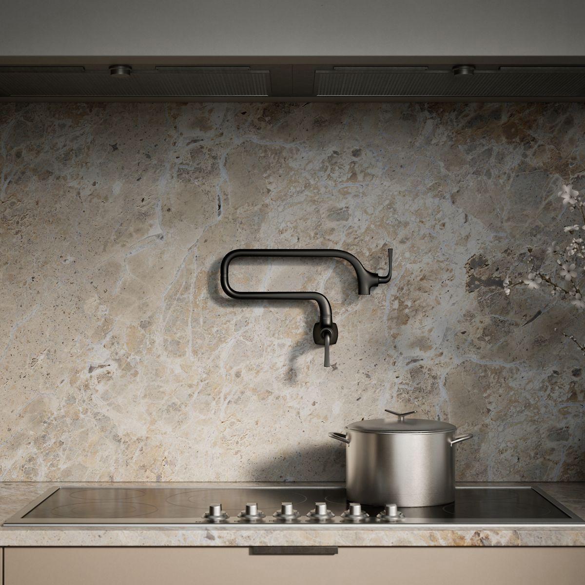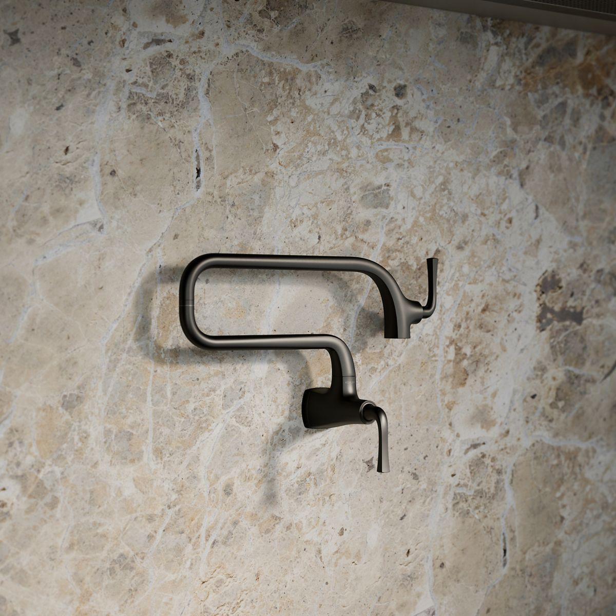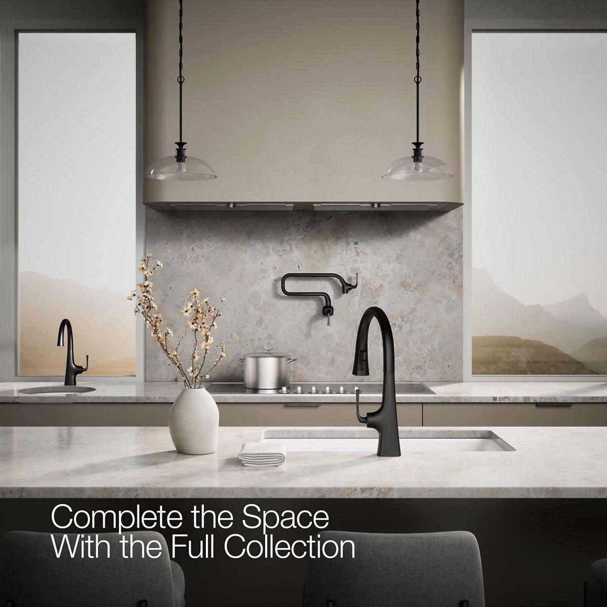 - Articulating spout with 360° rotation offers superior clearance for filling pots on cooktops and ranges