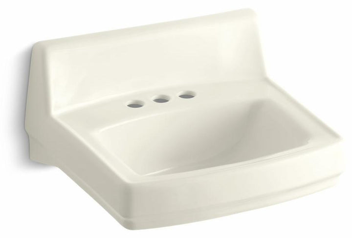 When your lavatory needs to stand up to rigorous use, depend on premium KOHLER materials. Crafted of vitreous china with our exclusive KOHLER glaze, this Greenwich wall-mount lavatory will provide a lifetime of beauty and reliable performance. Its remarkably hard, glossy finish protects the surface for a clean, sanitary sink that maintains its shine under repeated use. This model has drillings for a concealed arm carrier, a faucet with 4" centers and includes a wall hanger.