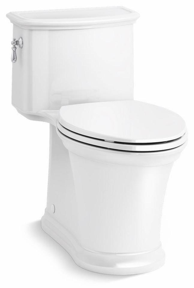 - One-piece toilets integrate the tank and bowl into a seamless, easy-to-clean design.
