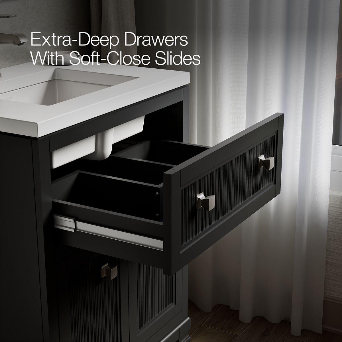 - One full-extension 12-3/4" (325 mm) drawer with soft-close side-mount slides