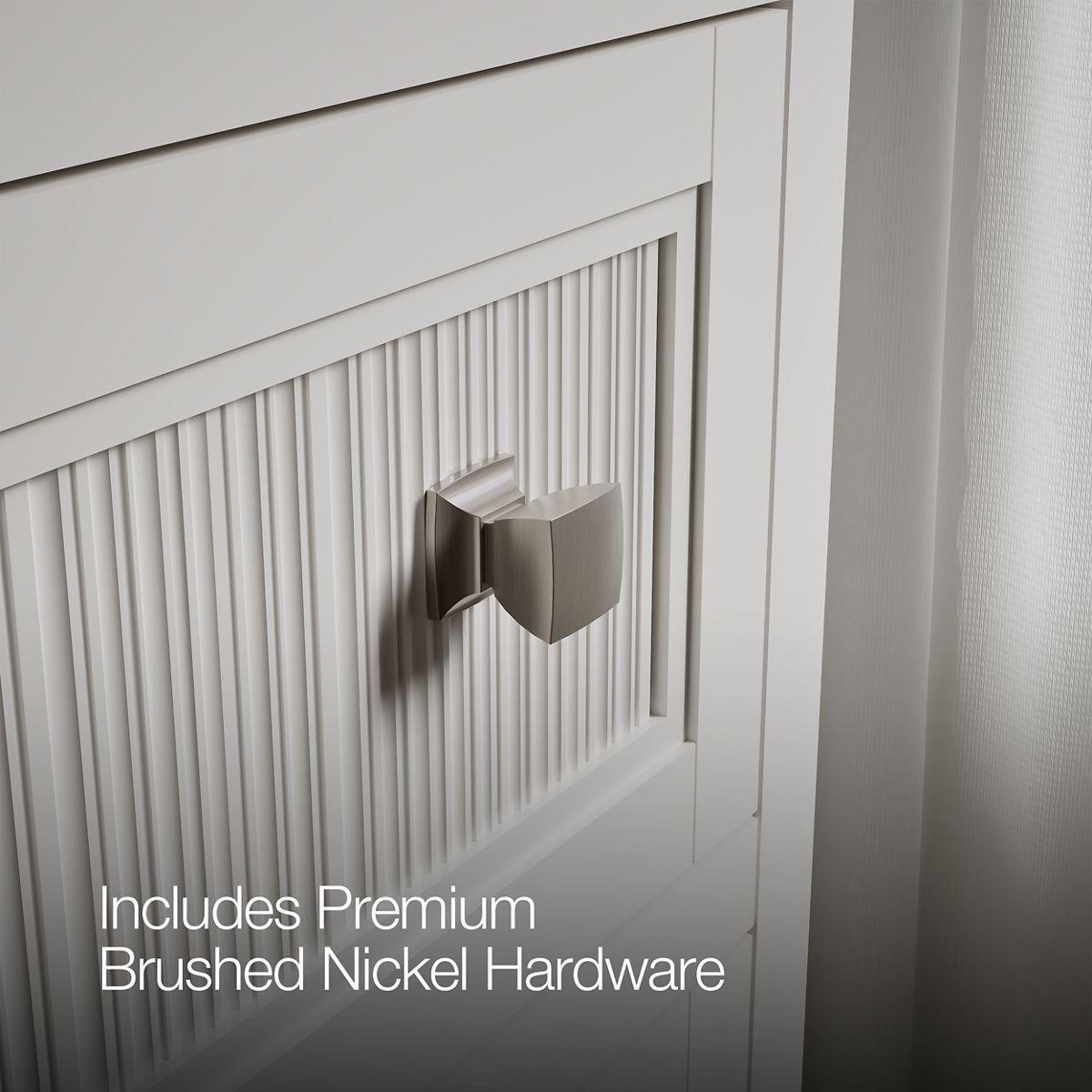 - Brushed Nickel hardware included on the White and Slate Grey vanities
