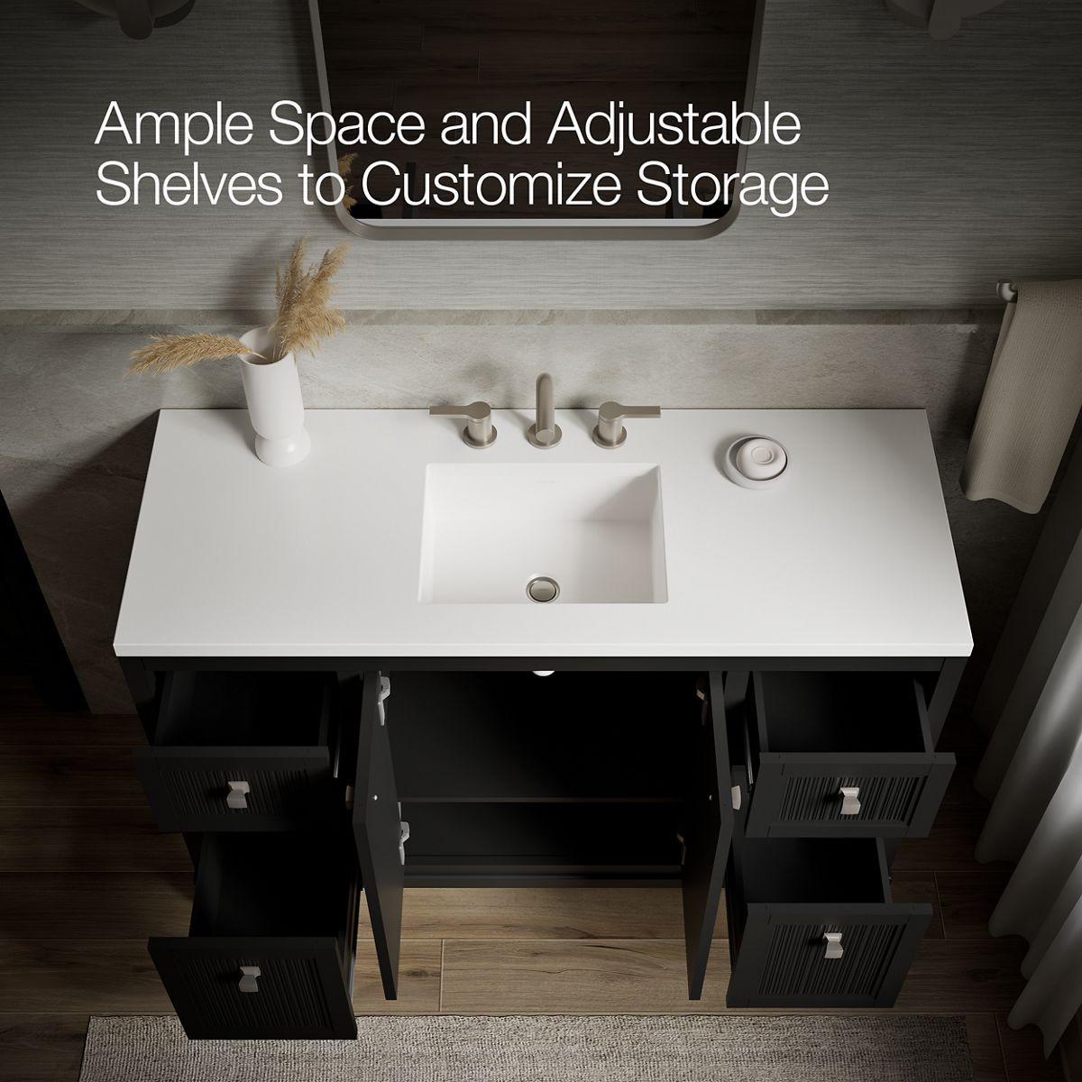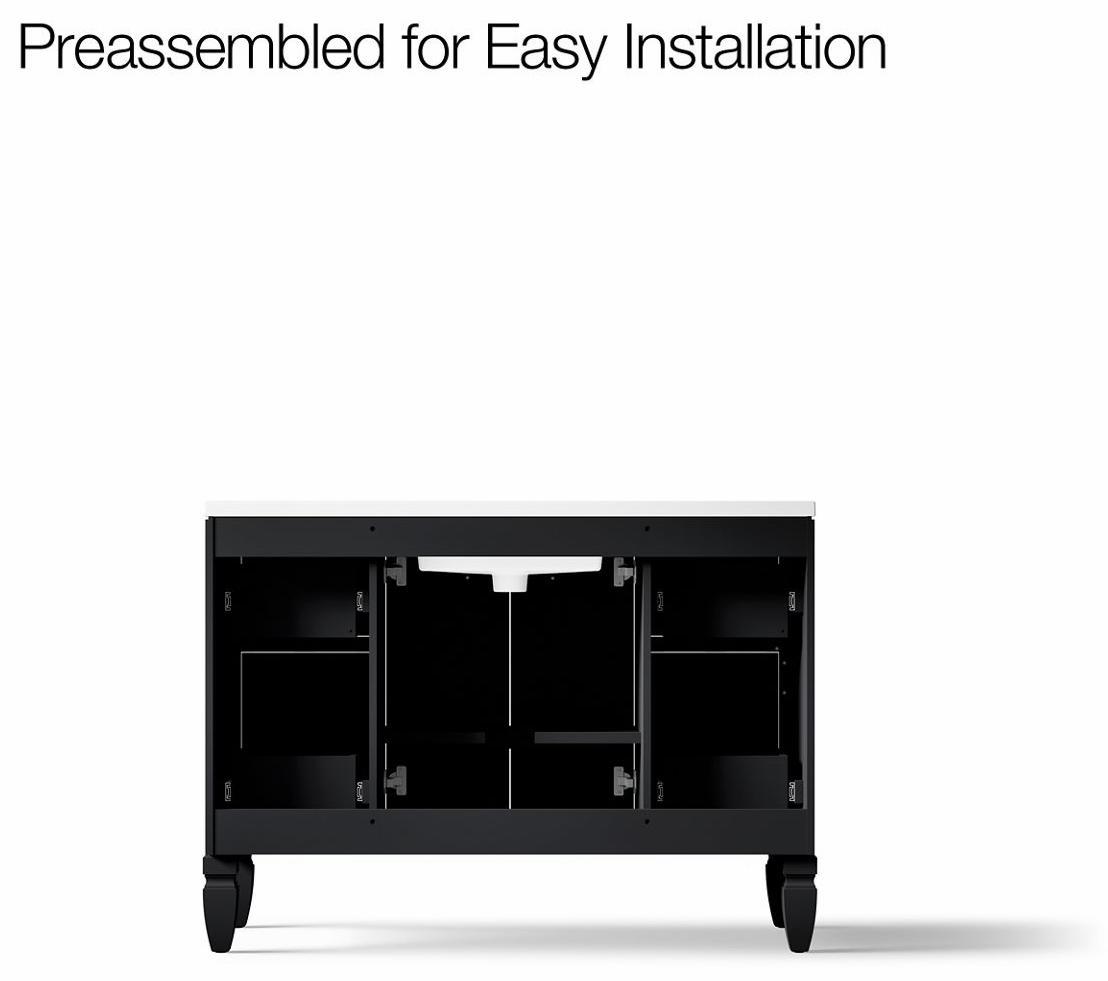 - Finish-matched cabinet interior offers generous clearance for plumbing.