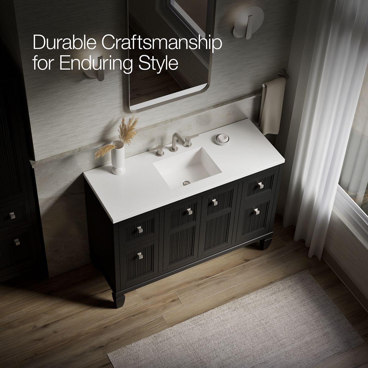- Pure White (PWH) quartz vanity top adds beauty and long-lasting durability