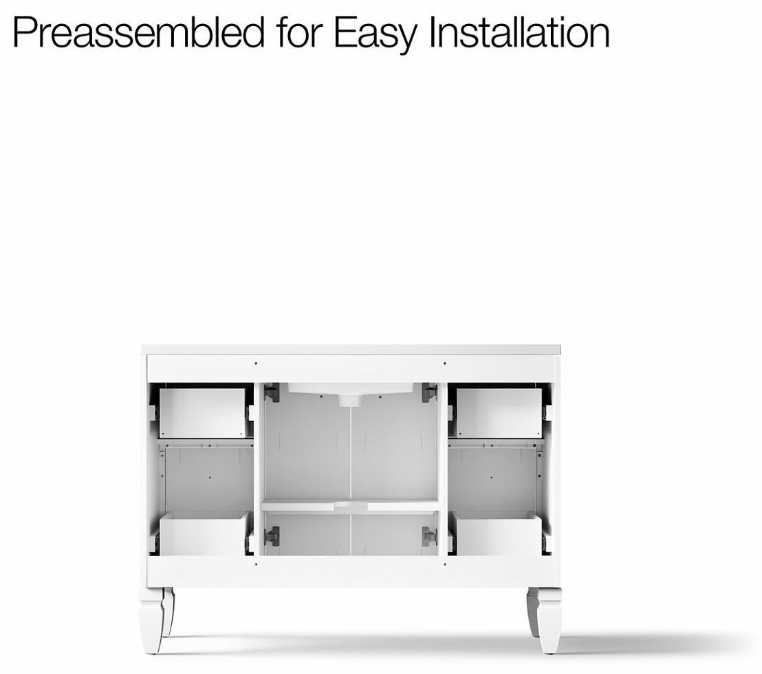 - Finish-matched cabinet interior offers generous clearance for plumbing.