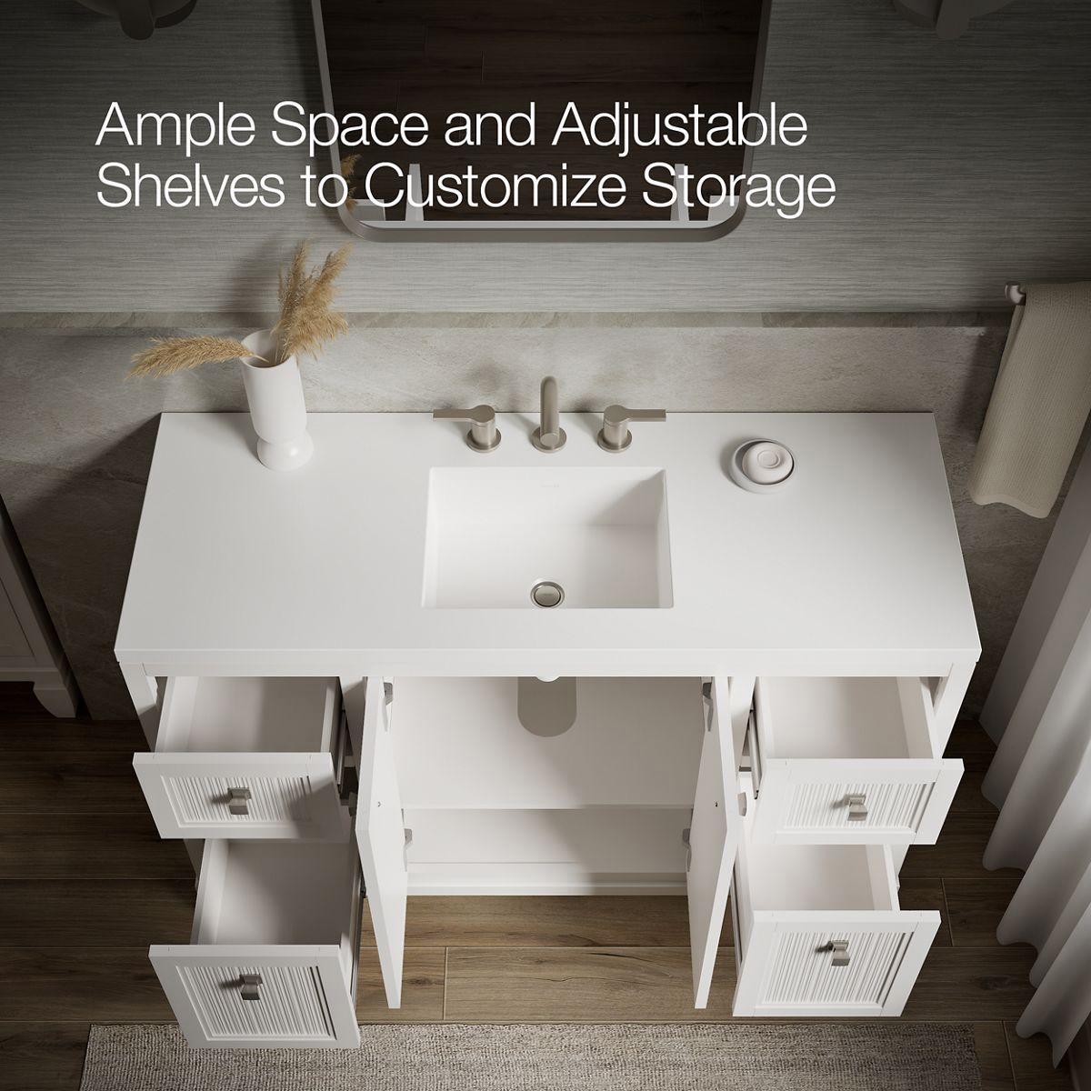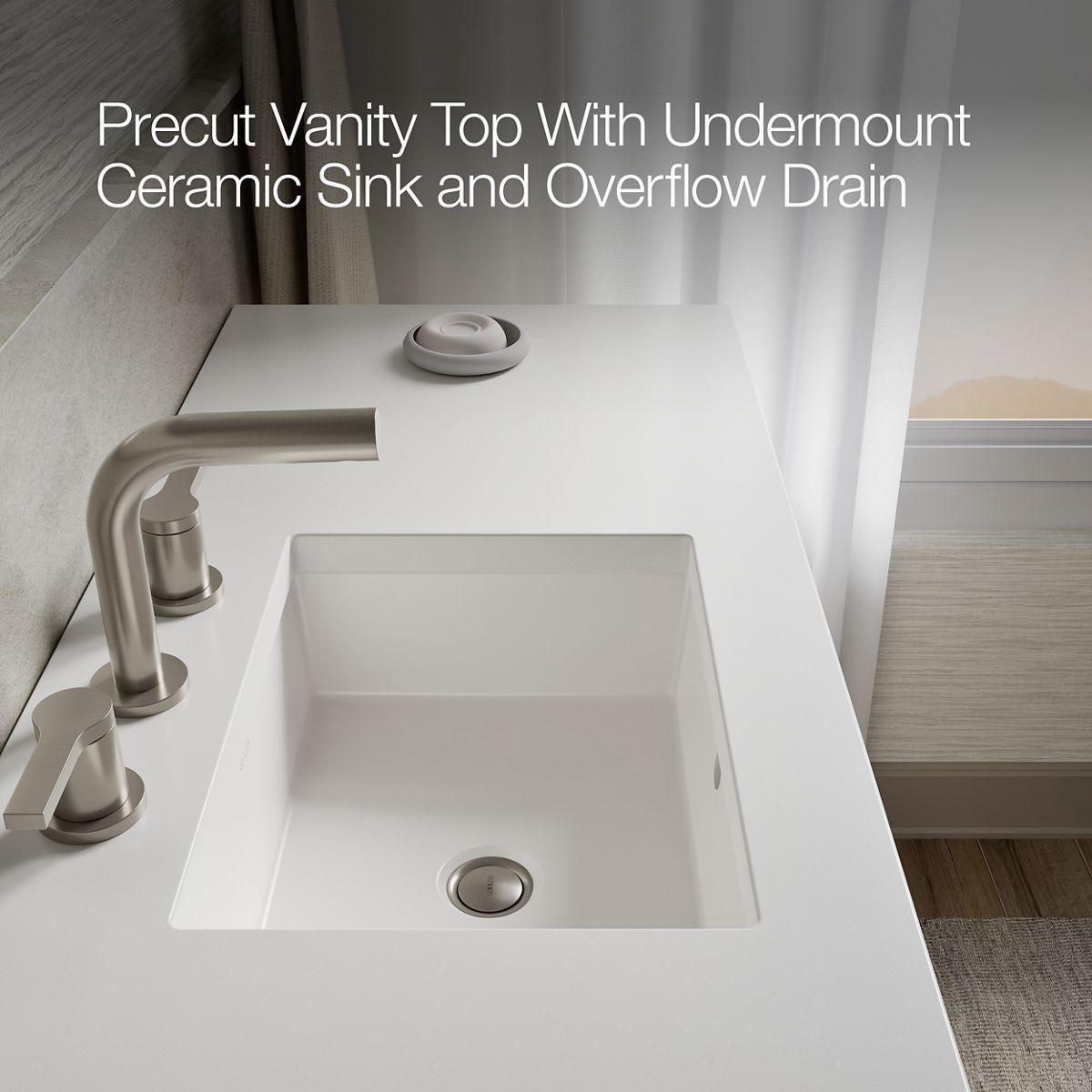 - Pure White (PWH) quartz vanity top adds beauty and long-lasting durability