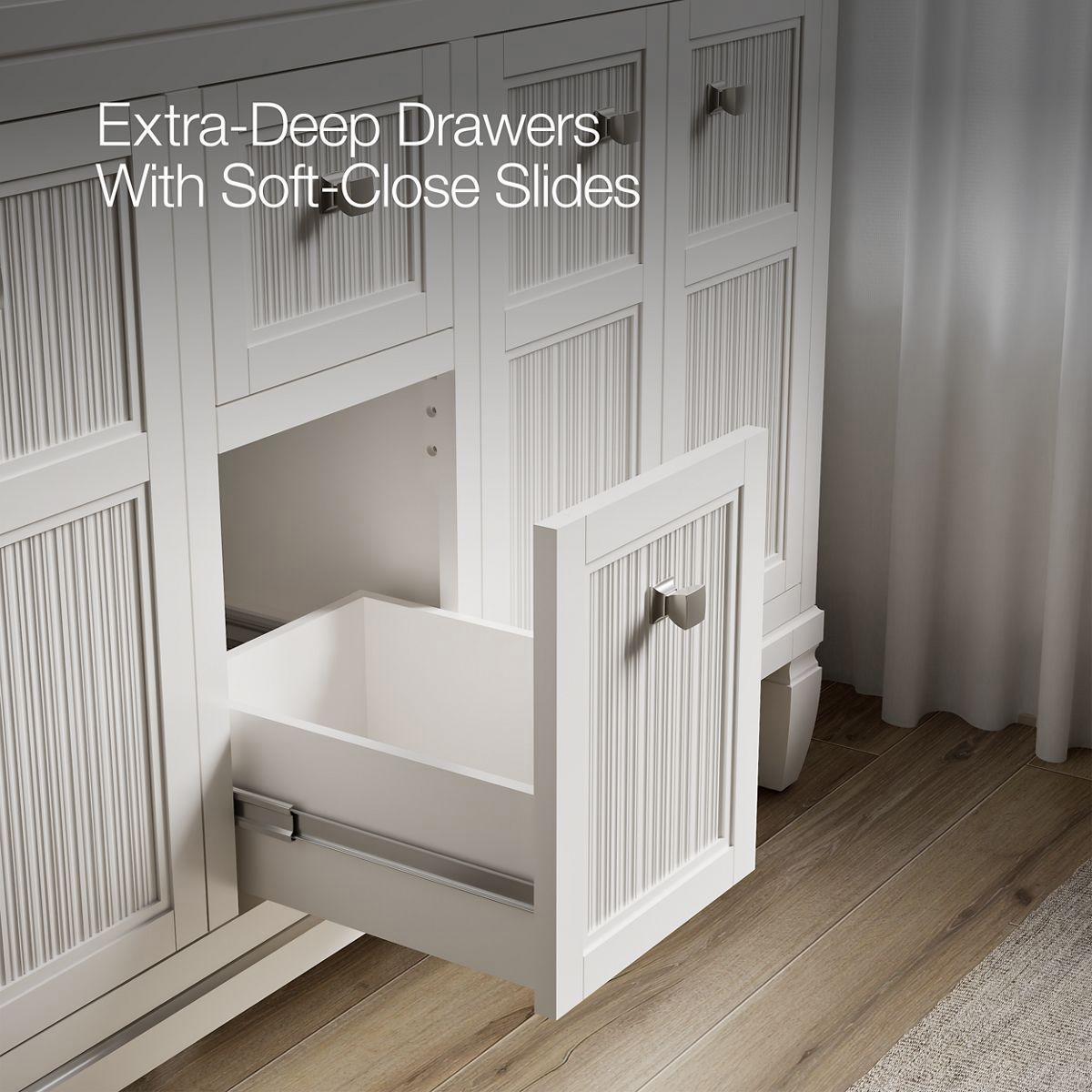 - Two full-extension 12-3/4 (325 mm) drawers with soft-close side-mount slides