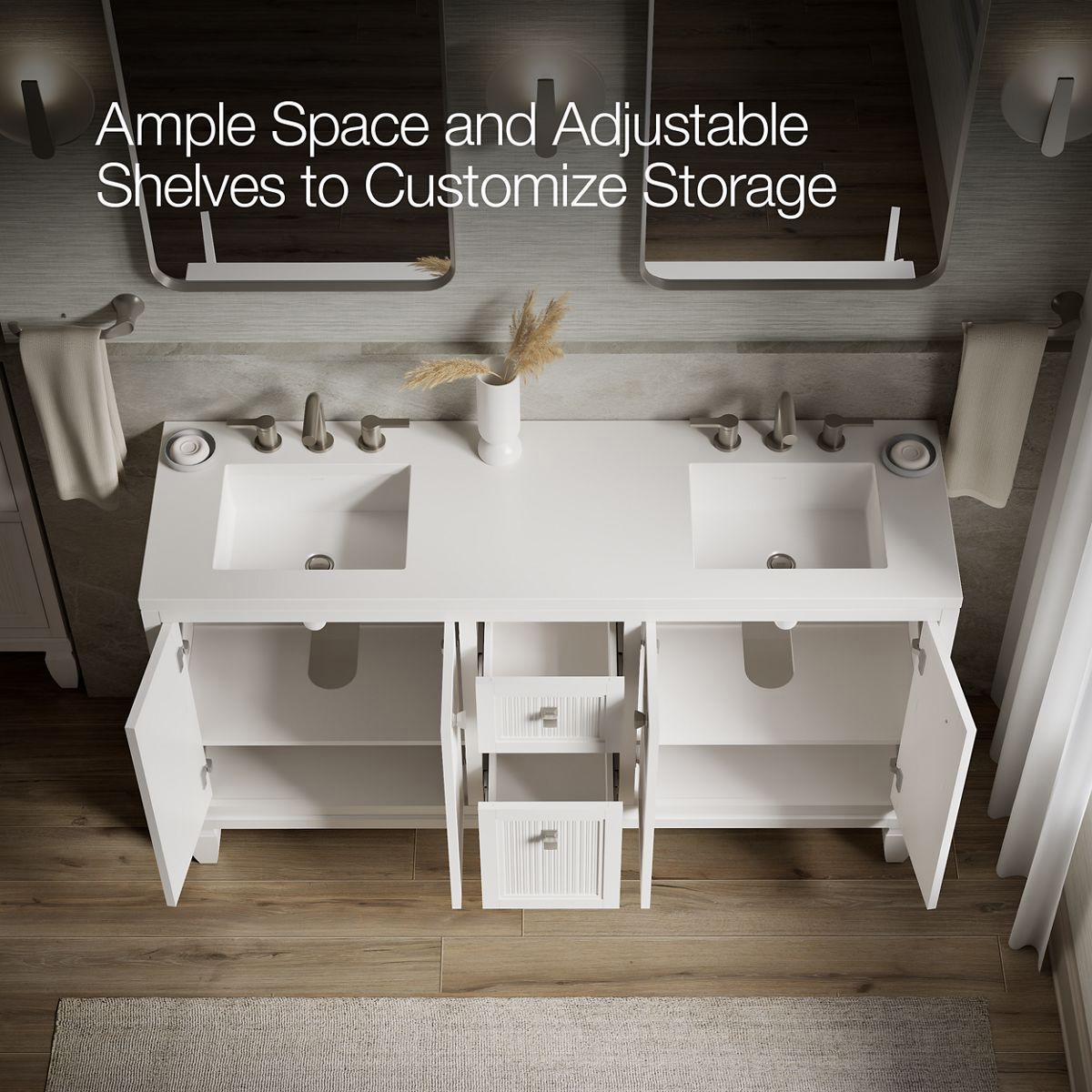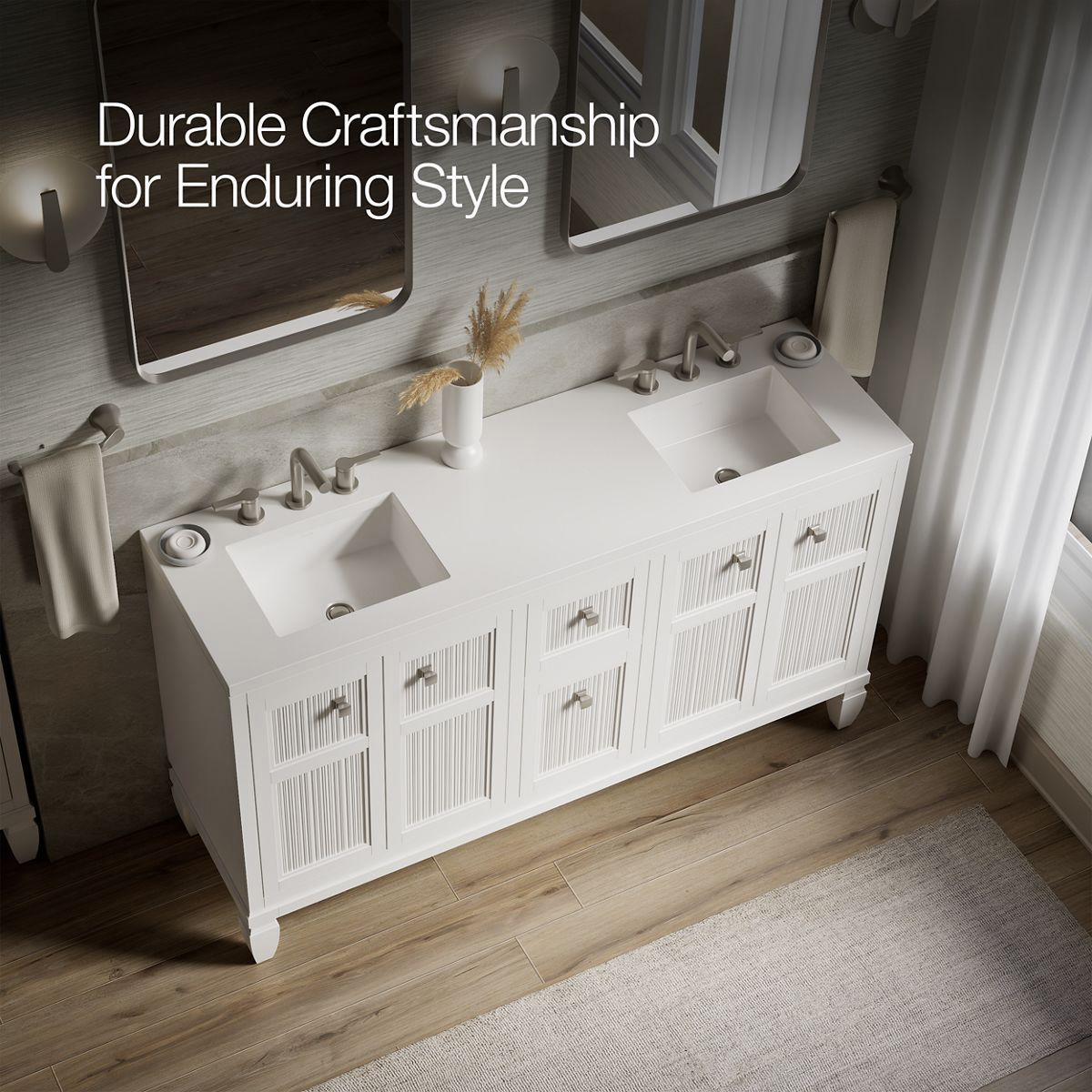 - Pure White (PWH) quartz vanity top adds beauty and long-lasting durability