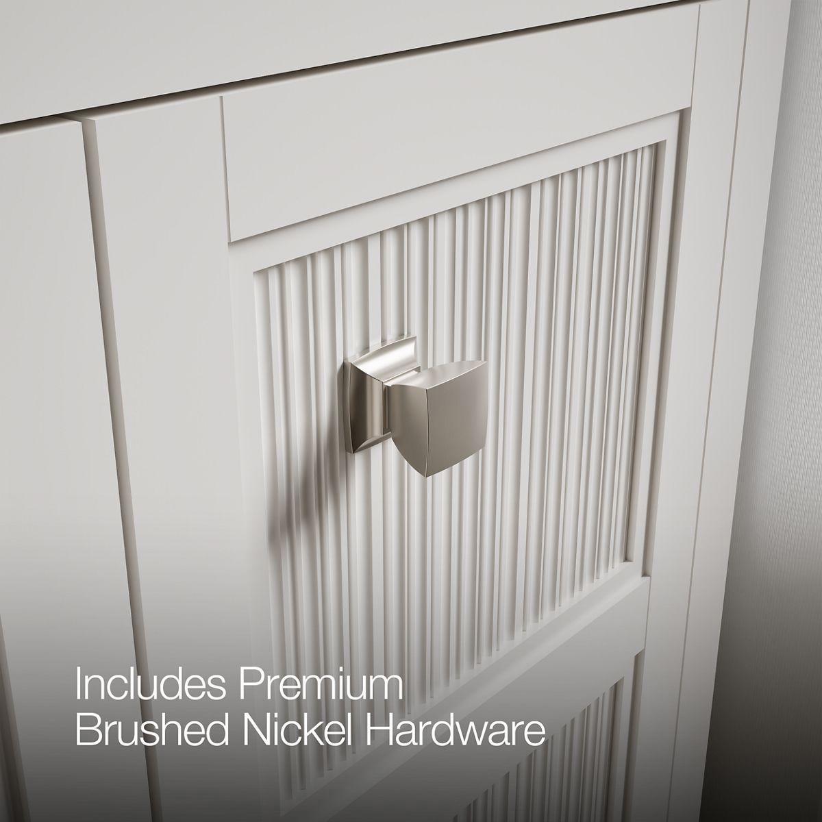 - Brushed Nickel hardware included on the White and Slate Grey vanities