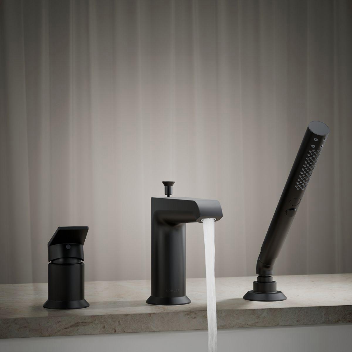 Minimalist in its design, the Hint™ bathroom faucet collection is a versatile style choice for traditional or contemporary environments. Coordinate with KOHLER® Pitch™ showering components, and create a space that will look beautiful for years to come. This deck-mount bath faucet includes a handshower to enhance your bathing options.