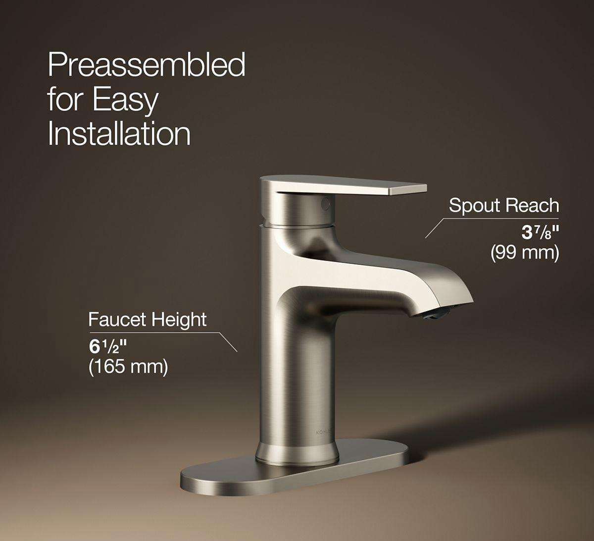Minimalist in its design, the Hint bathroom faucet collection is a versatile style choice for traditional or contemporary environments. Coordinate with KOHLER Pitch showering components, and create a space that will look beautiful for years to come. This single-handle faucet includes an escutcheon plate for three-hole installation.